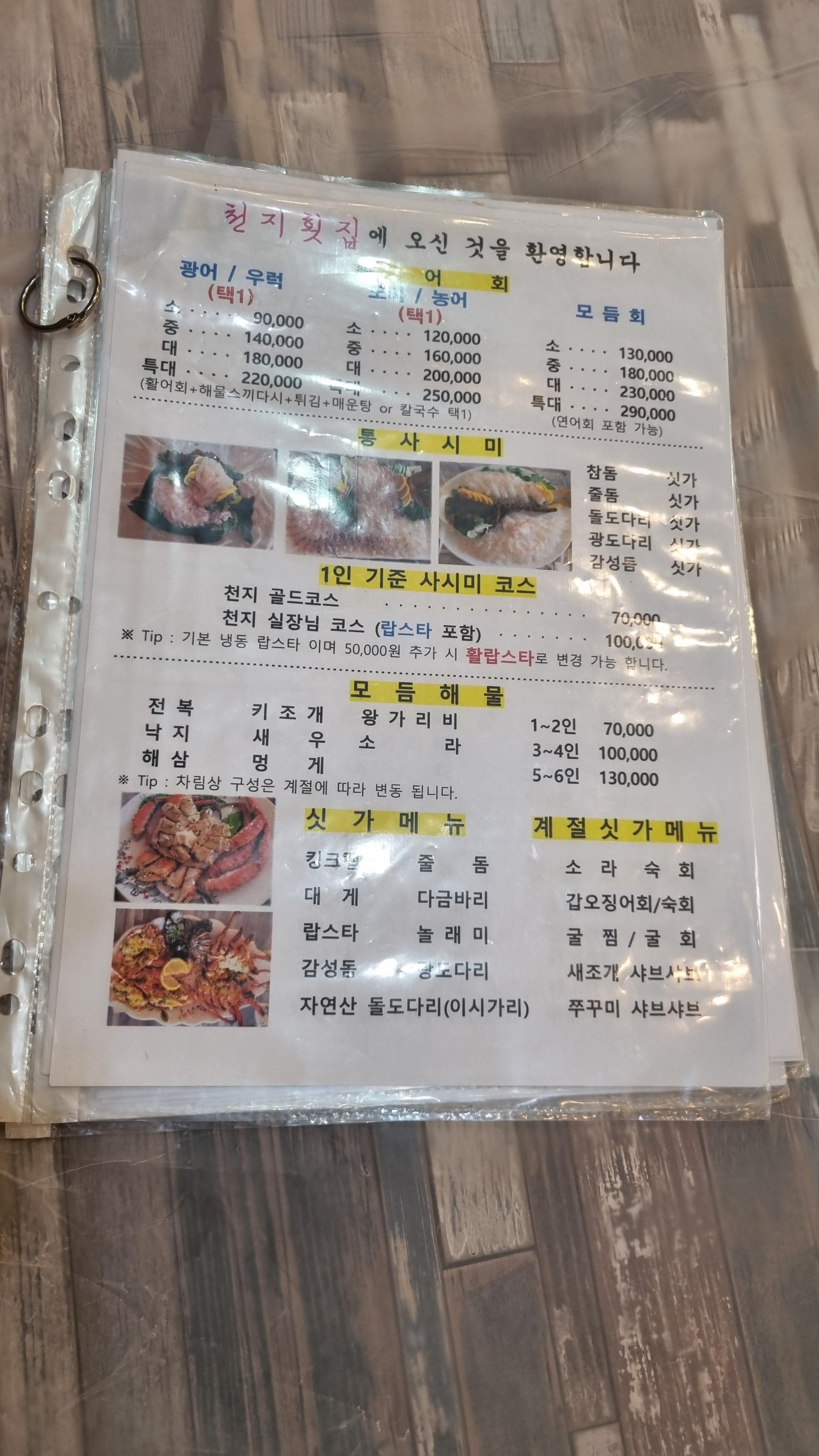3. 천지횟집 메뉴, 무엇을 먹을까요?