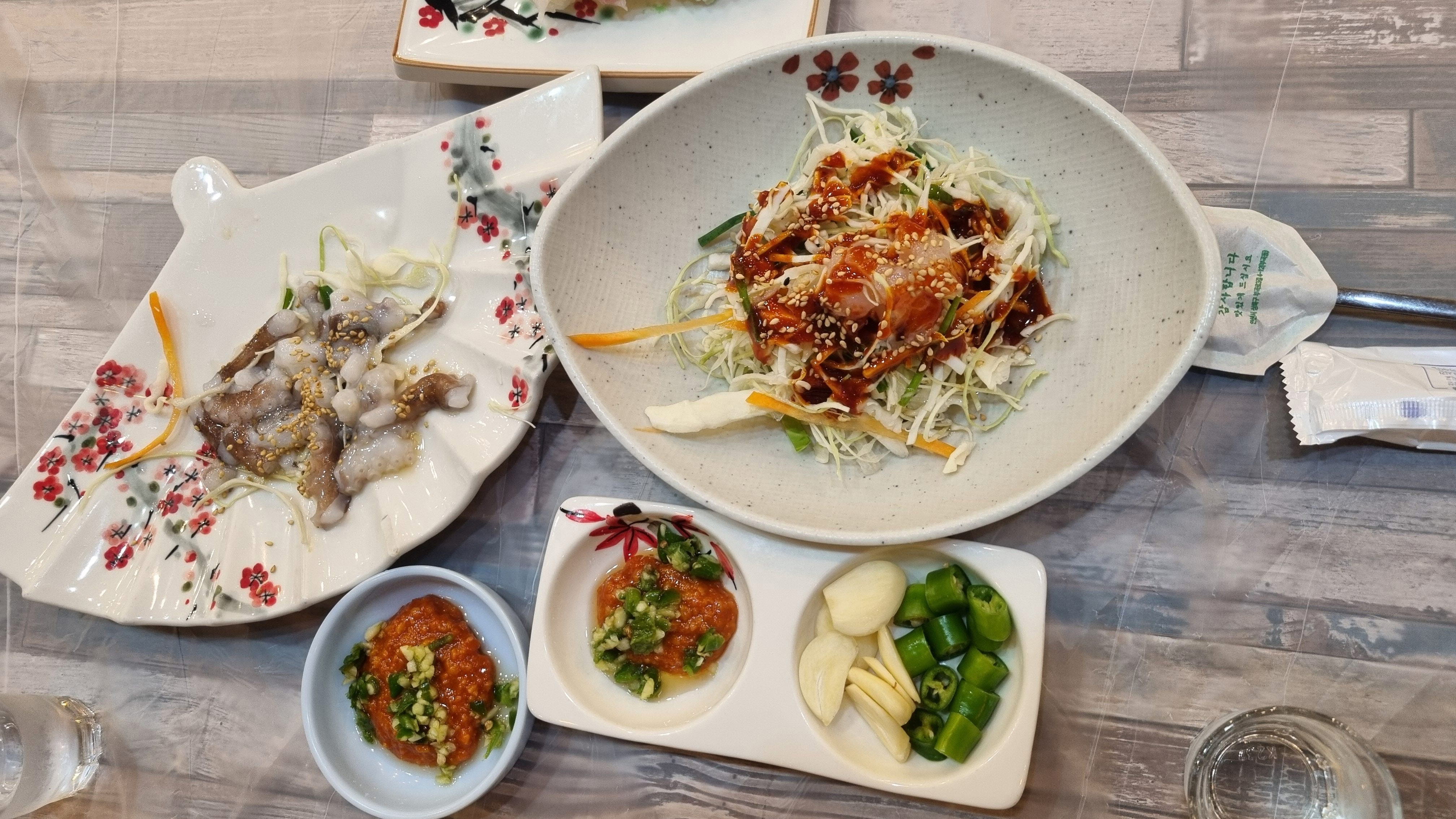 소자라고 해도 푸짐한 양에는 동의할 수없지만 정갈한 음식과 플레이팅은 합격점을 주고 싶습니다. 바다를 보면서 회를 먹을수 있다는 것은 큰 장점이고 그값은 치뤄야 한다고 생각했기 때문에 도시에서 먹는 회 가격보다는 더 나가지만 여유있게 식사를 할 수있다는것은 좋았습니다.
