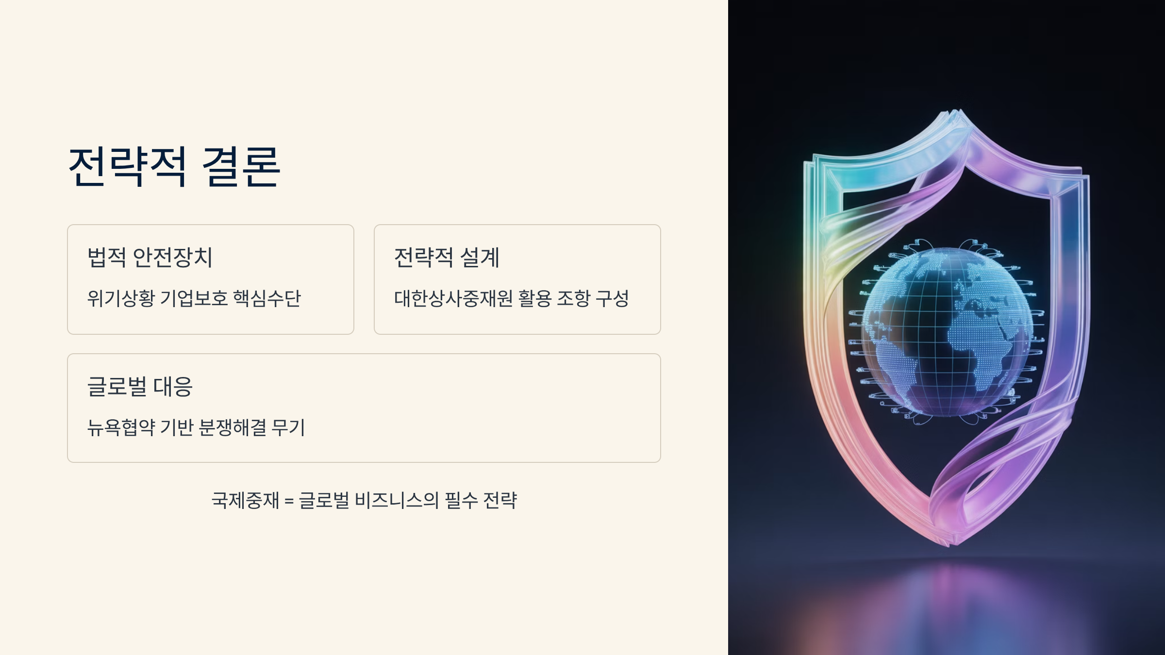 대한상사중재원을 활용한 전략적인 중재조항 설계와 뉴욕협약의 활용법은 글로벌 분쟁 대응의 핵심 무기가 됩니다.