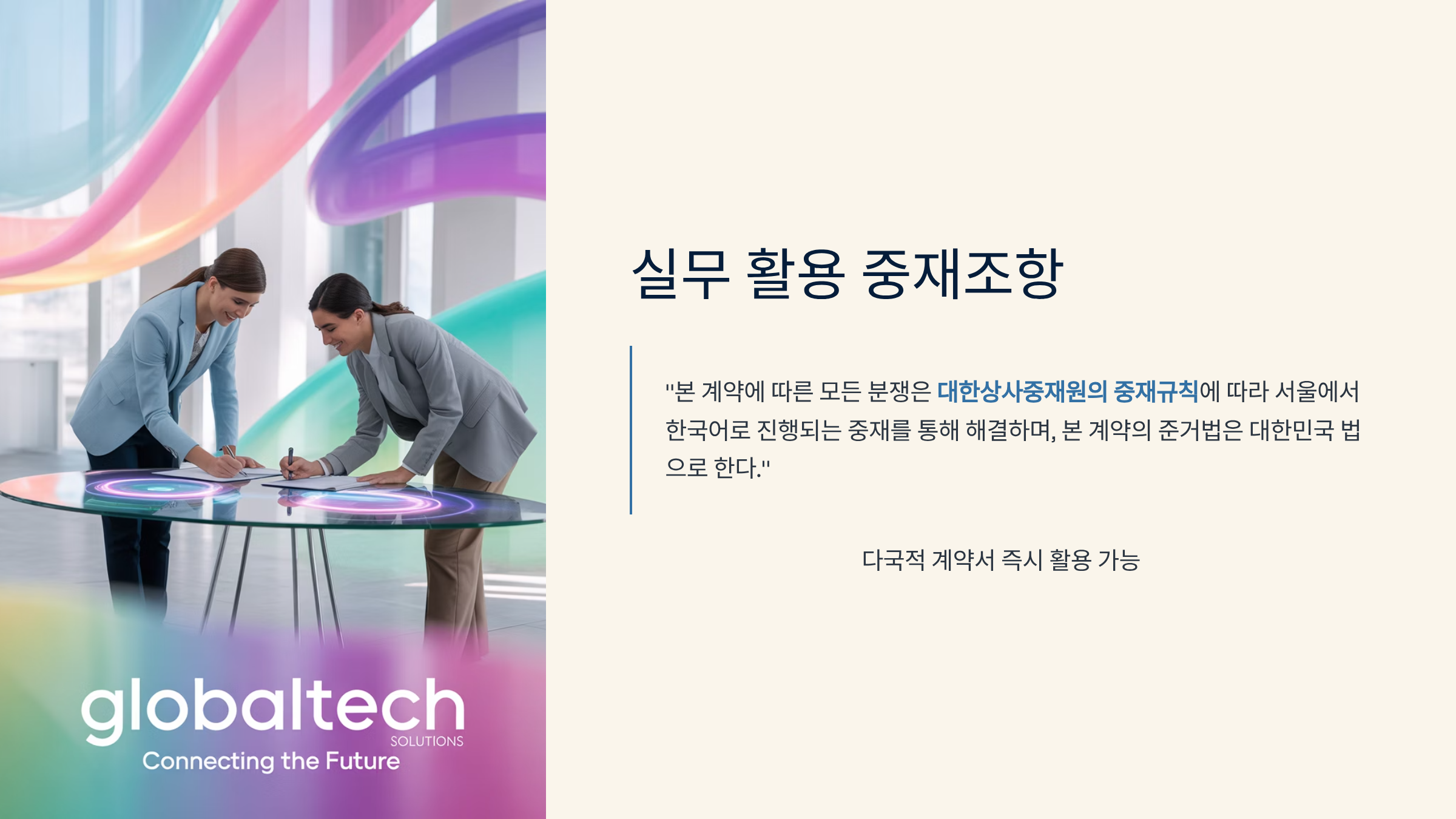 국제계약에서 중재조항은 단순한 조건이 아니라, 위기 상황에서 기업을 지켜줄 법적 안전장치입니다.