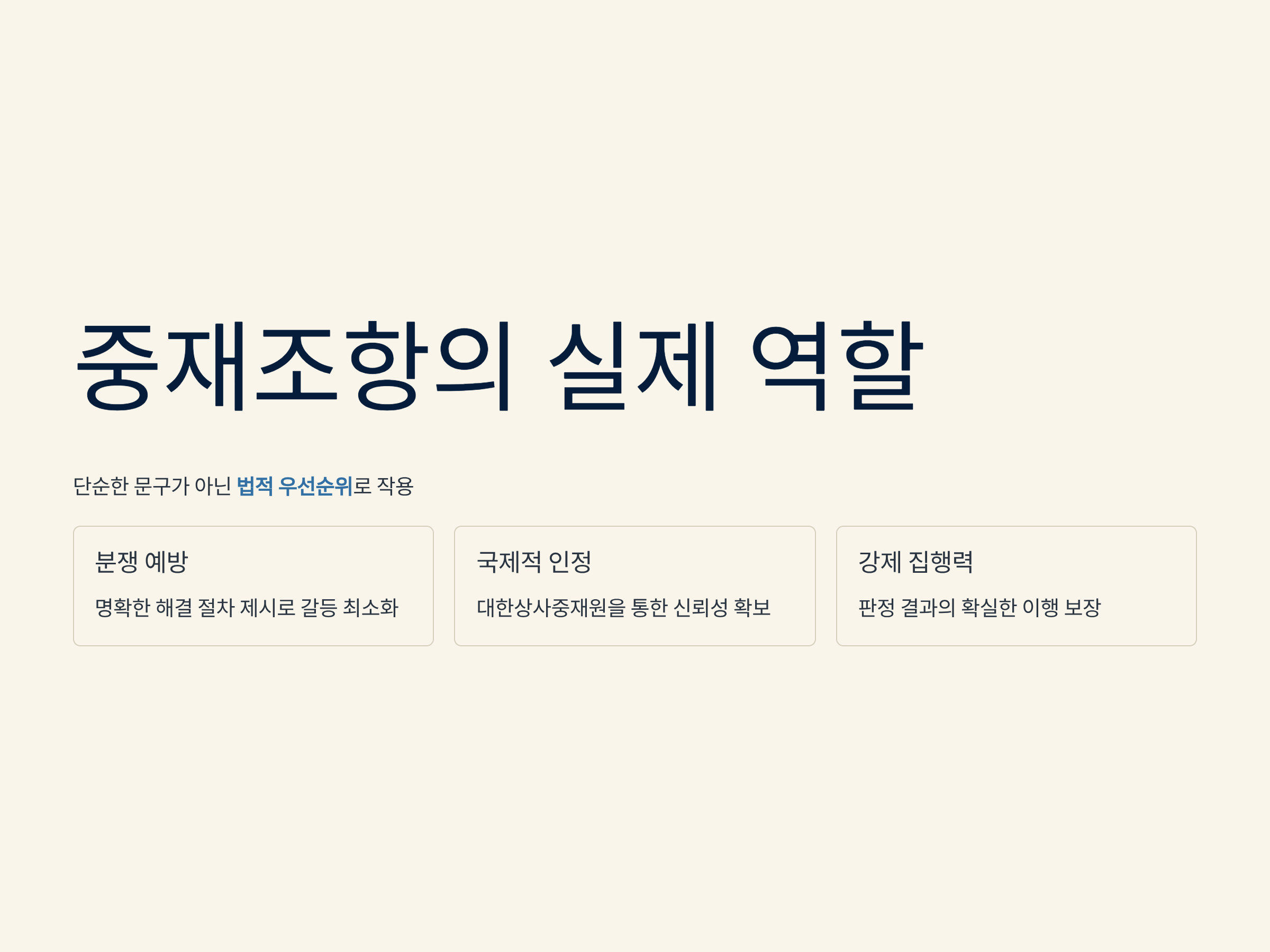 특히 대한상사중재원을 지정한 중재조항은 법원 판결 못지않은 강제력을 가지며, 집행도 수월합니다.