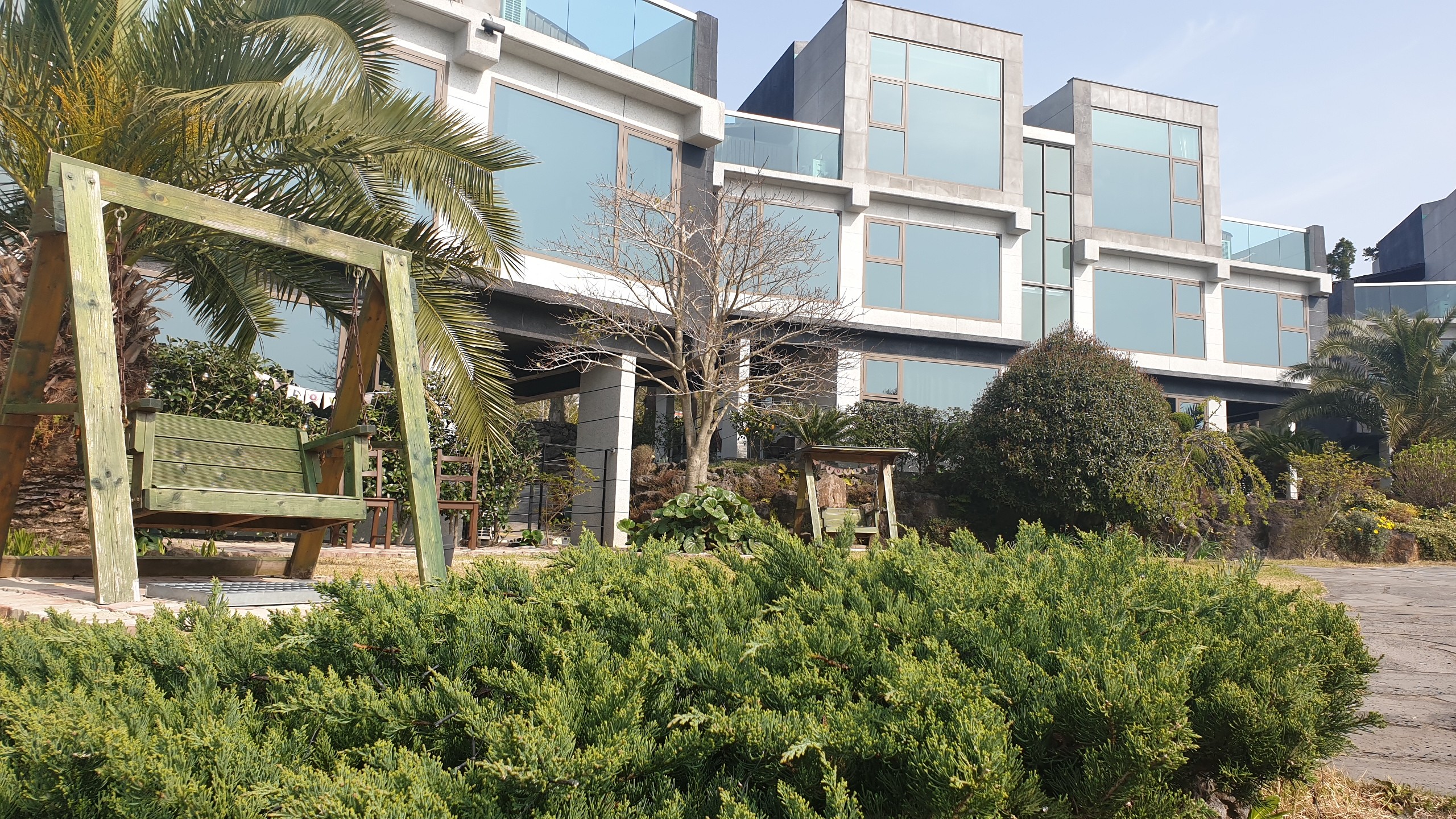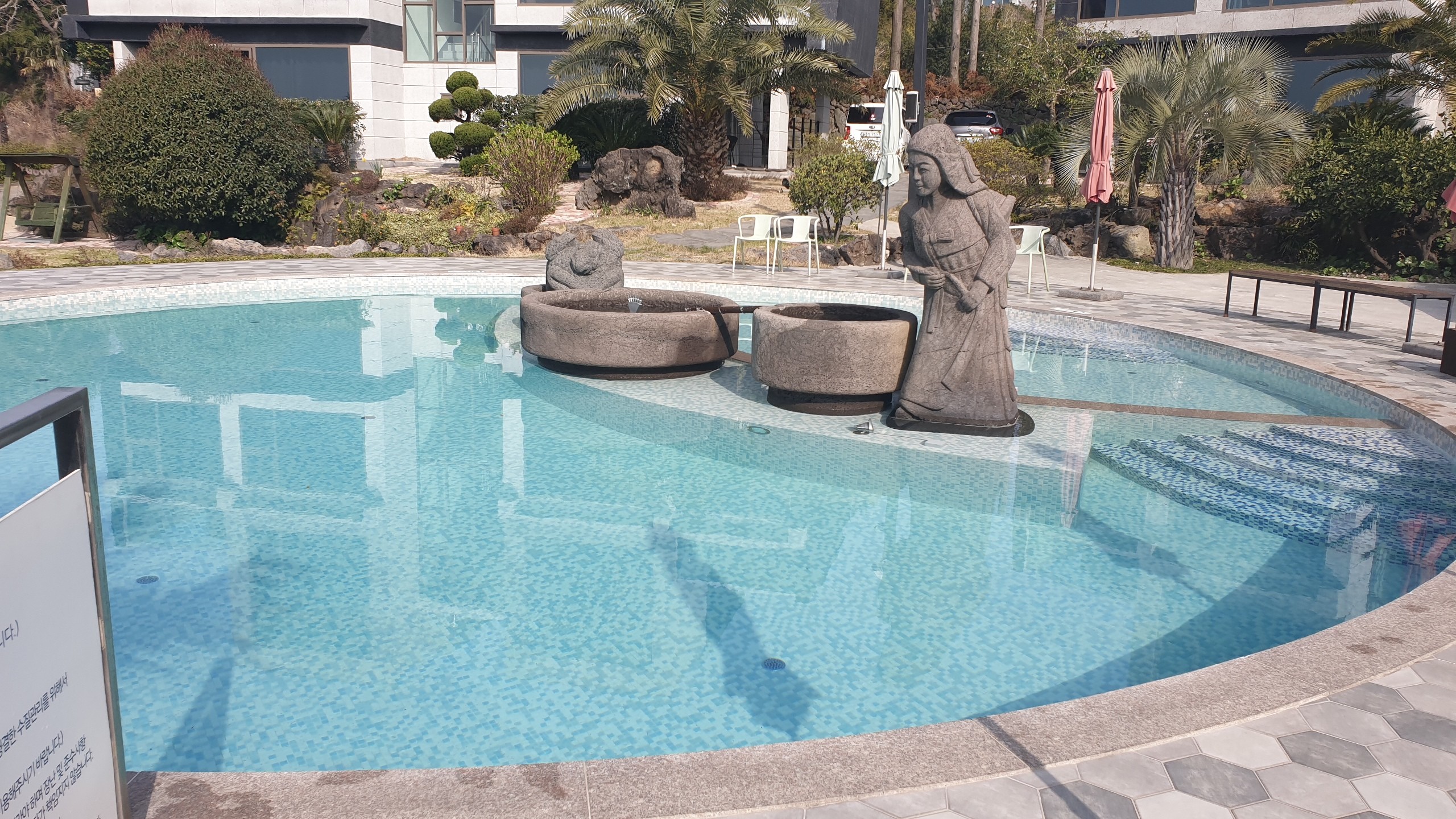 여름에 오면 정말좋을듯하네요. 중앙에느 크지 않지만 수영장이 있어서 아이들과 함께라면 진짜좋을거 같아요 앞쪽으로 네모난 상자는 족욕을 즐길 수있는곳인데요, 하루종일 제주도이곳저곳 을 걷다보면 피로해질 발을담그고 하룰의 피로를 풀어볼 수가 있답니다.