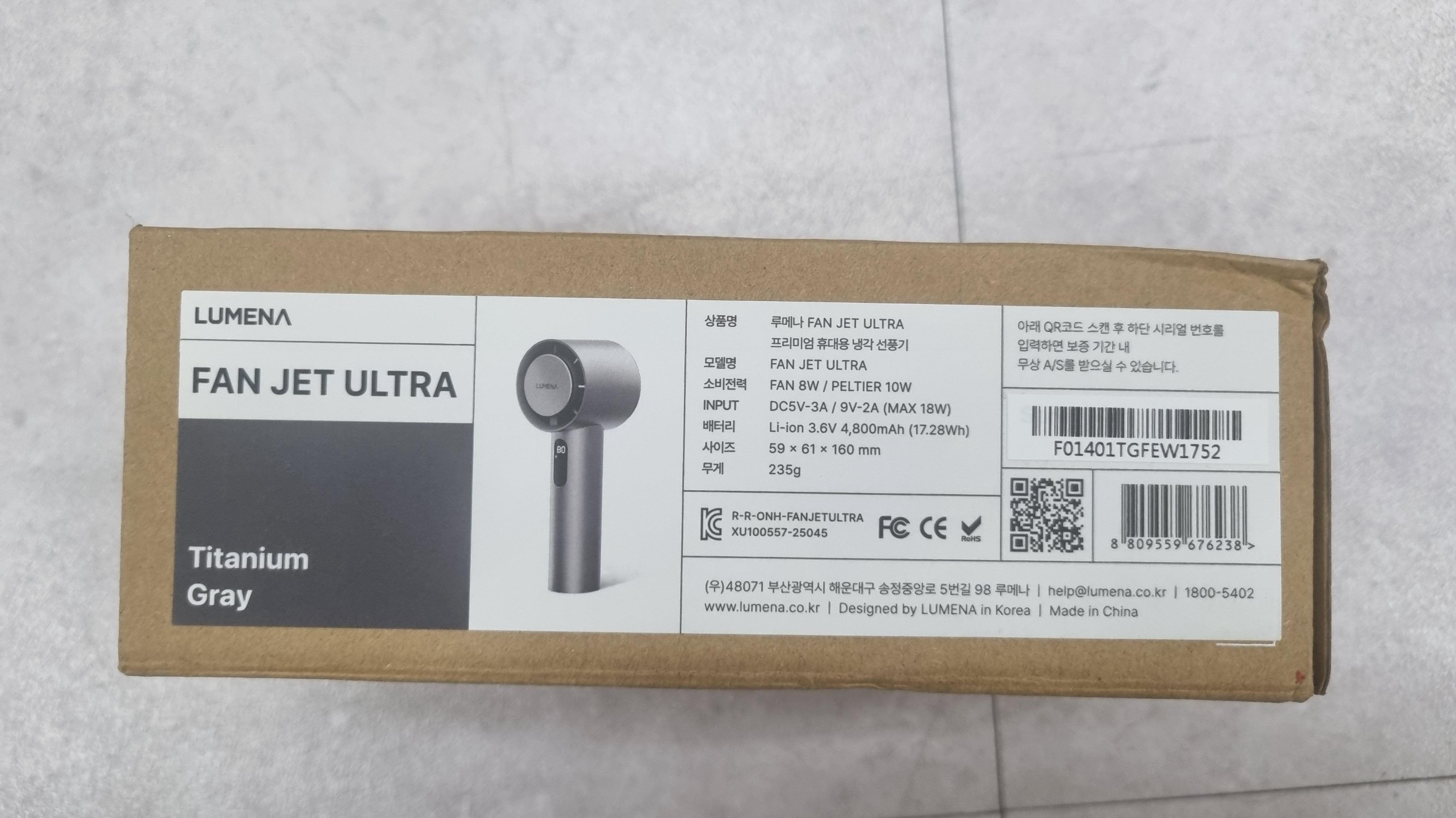 저는 쿠팡에서 구입을 했는데 역시나 빠른 배송으로 받을 수있고 박스는 이렇게 생겼습니다. 겉면에 lumena fan jet ultra 제품 ㅣ름과 상품에 대해 설명이 잘 나와있습니다.