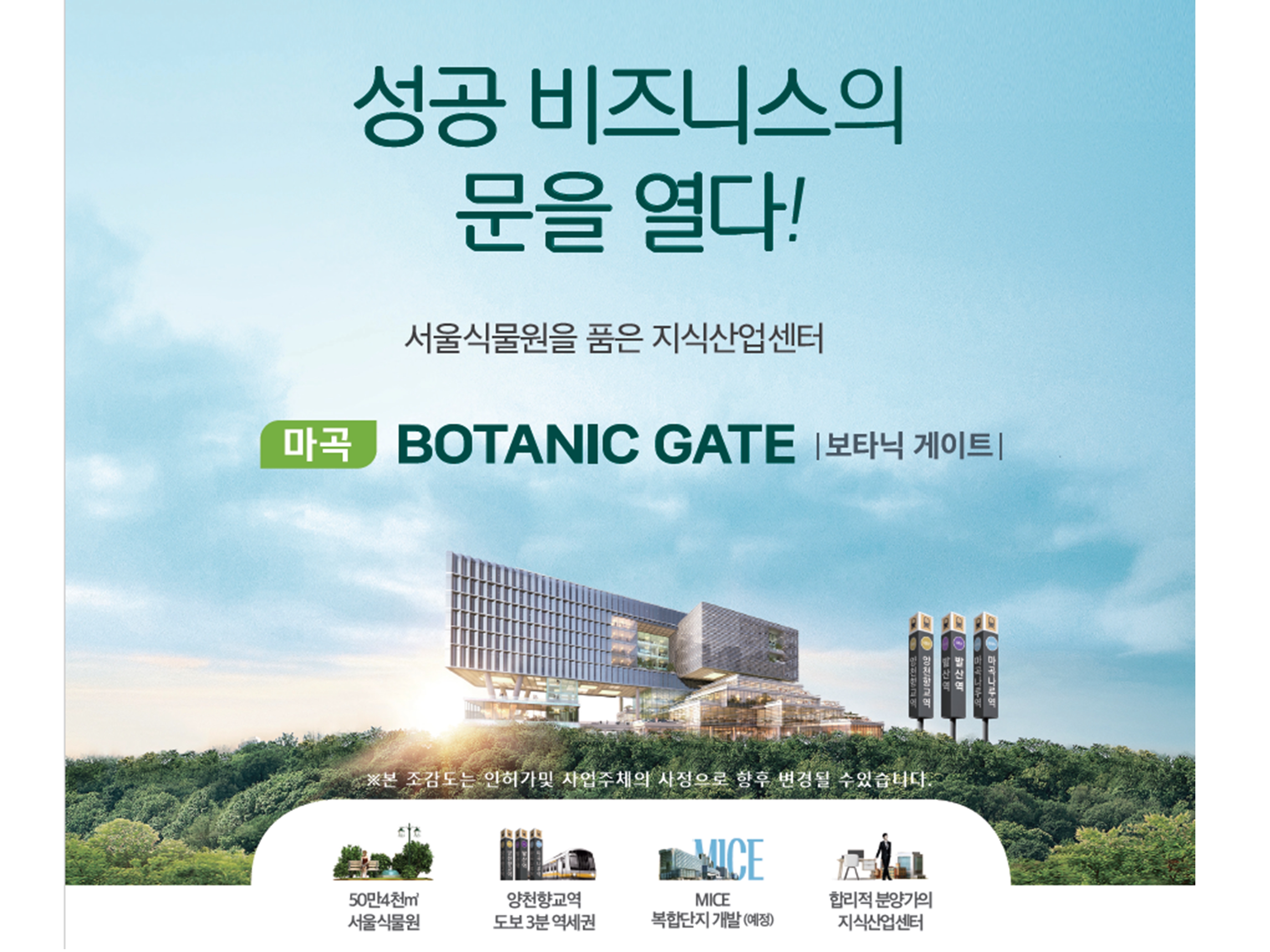 앞에는 서울식물원 옆, 뒤는 근린공원 이렇게 자연환경이 좋은 마곡 지식산업센터 는 물론 서울어디에서도 찾아볼 수없는 특별한 입지입니다.