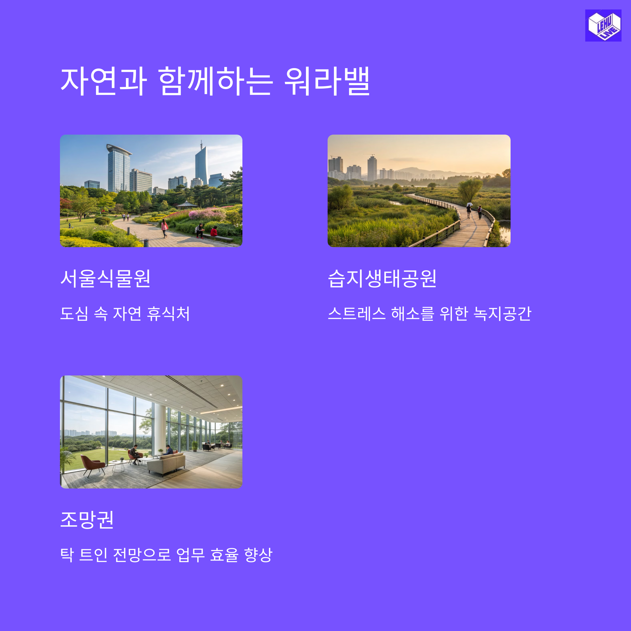 주요 인근 시설 서울식물원, 습지생태공원, 대기업 밀집