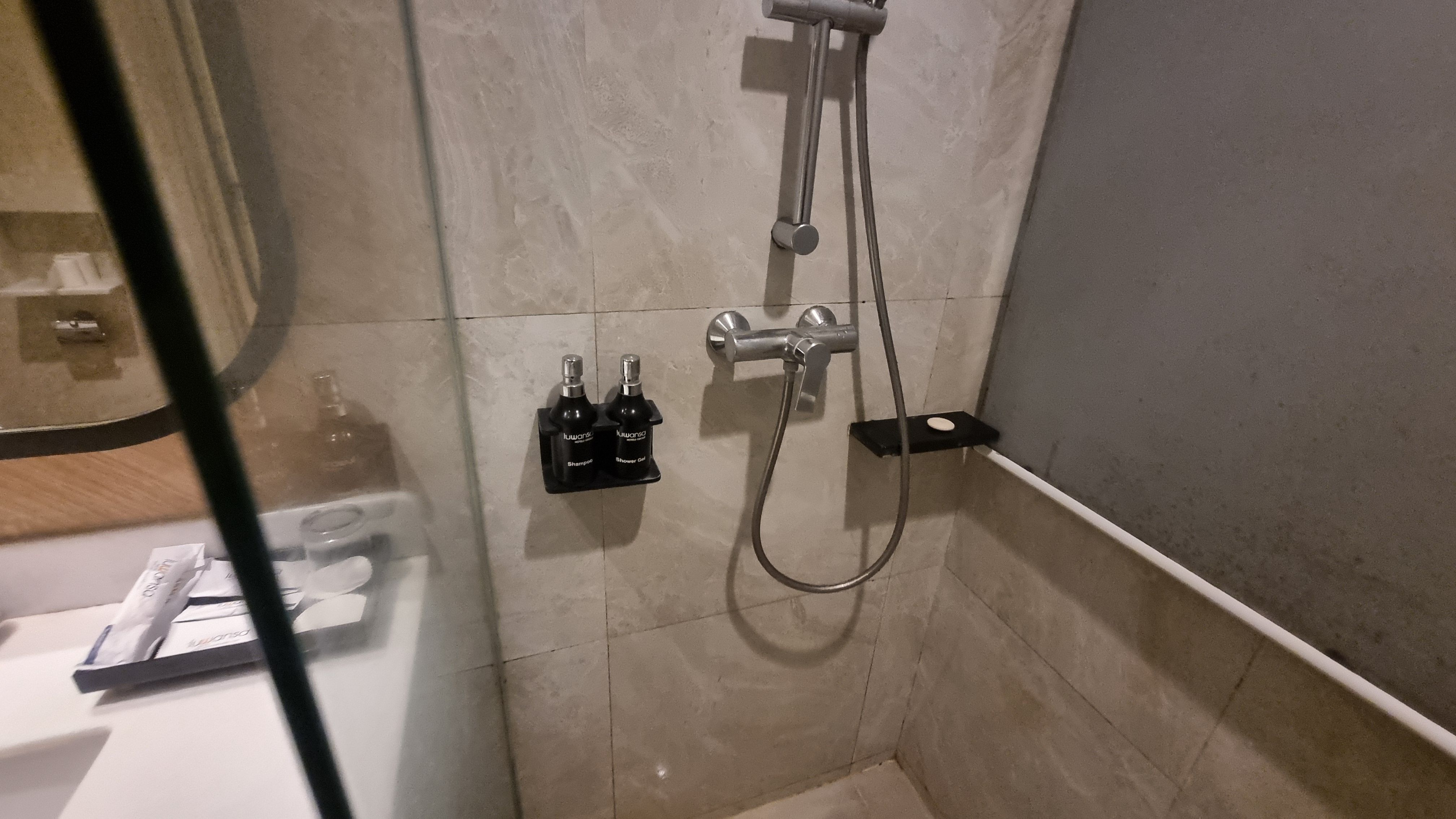 수압 역시 무난한 수준이었지만 배수 속도는 아주 빠른 편은 아니어서 샤워 시간이 길어지면 물이 약간 고이는 느낌이 있었습니다. 다만 크게 불편한 수준은 아니었습니다.