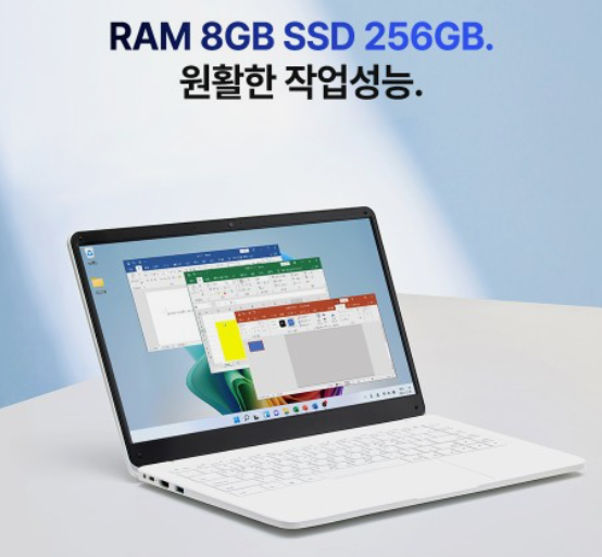 베이직북14 3세대는 인텔 셀러론 N5095 프로세서를 기반으로 하며, 8GB RAM과 256GB SSD를 탑재한 기본 모델도 충분히 빠릅니다.