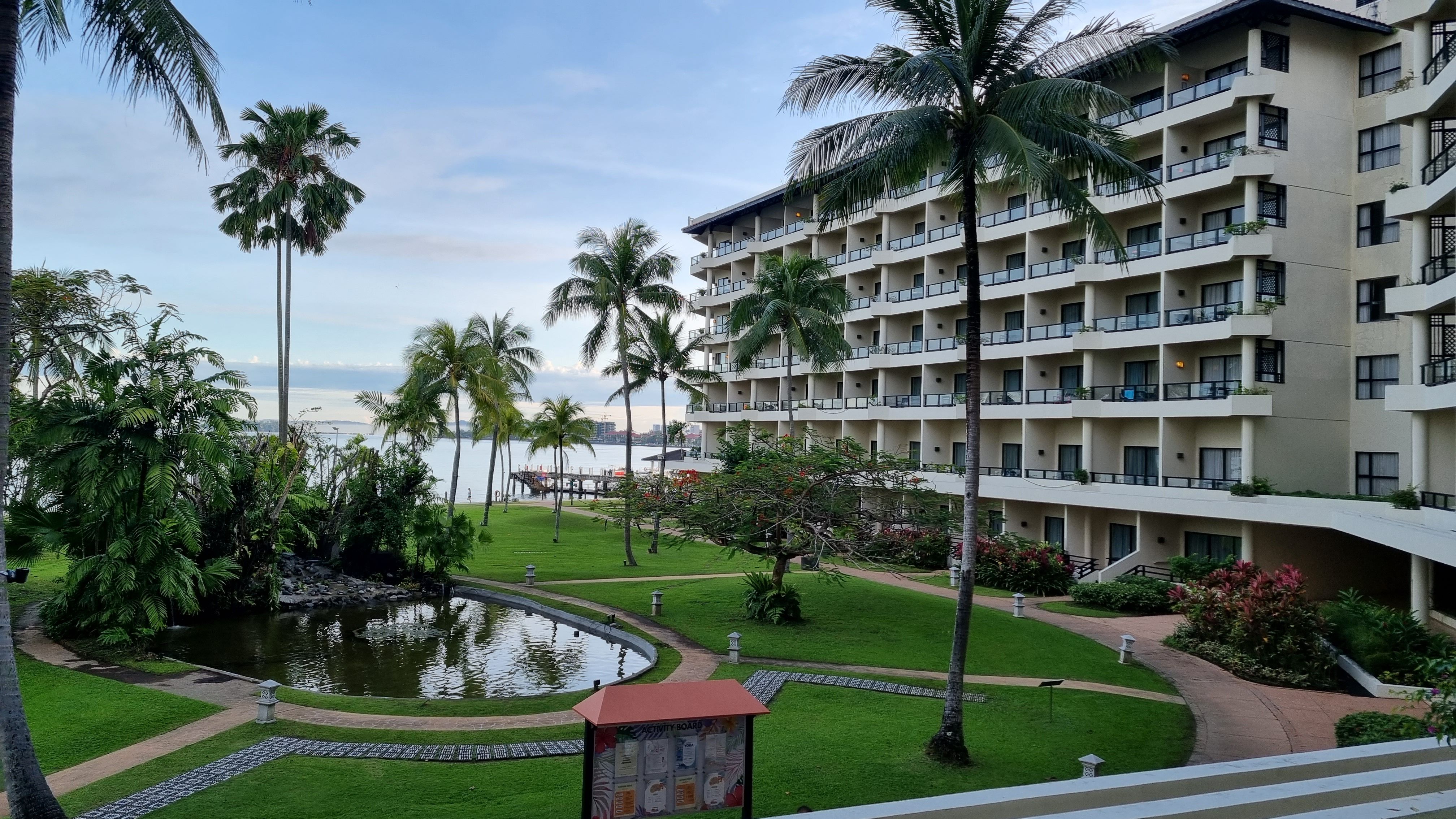호텔 뒷쪽으로 보이는 코타키나발루의 모습입니다 울창한 밀림과 멀리 산들이 펼쳐져있죠. 흔히말하는 앞쪽은 오션뷰이고 뒤쪽은 마운틴뷰이죠. 사정이 있어서 마지막날 급작스레 레이트체크아웃을 하게 되었는데 2층에 숲을 바라보는쪽도 썩 나쁘진 않더군요.