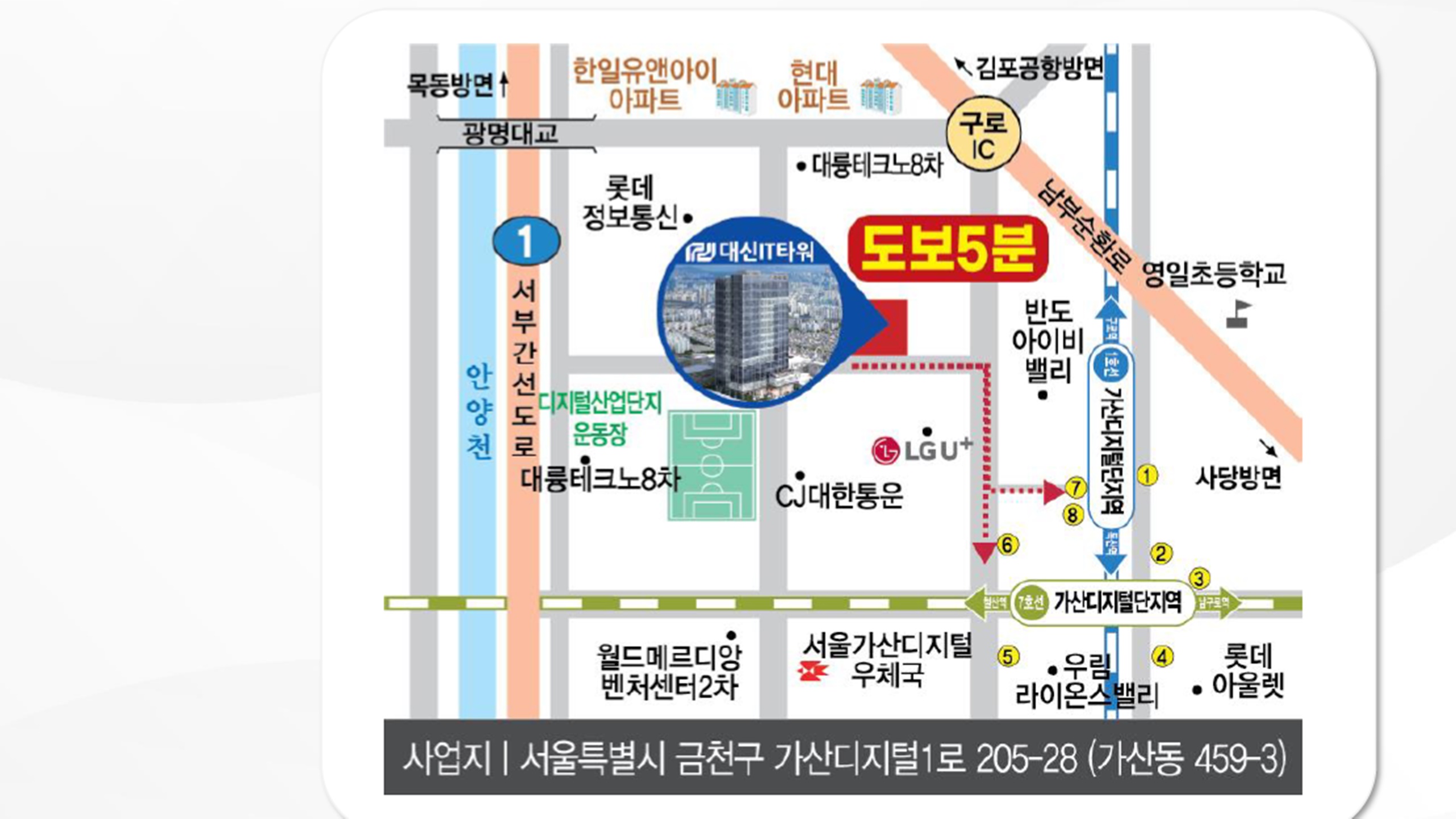 이런 가운데 가산디지털단지 6번출구에서 걸어서 5분이면 도착 가능한 역세권입지의 대신it타워가 사업설명회와 함께 곧 청약절차에 착수한다는 소식입니다.