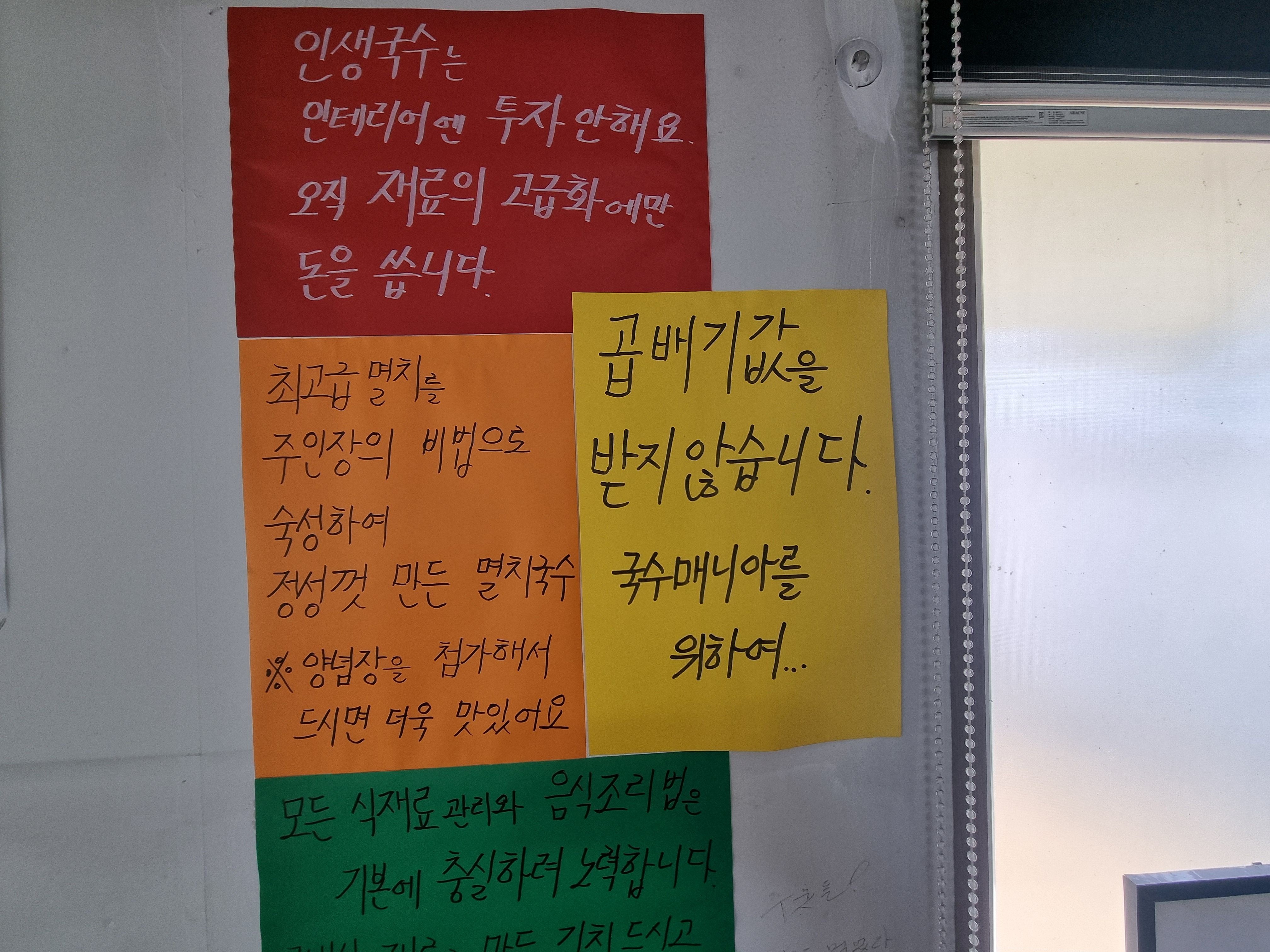 인생국수의 가장 큰 장점 중 하나는 가성비가 뛰어난 가격입니다. 멸치국수는 7,000원, 비빔국수는 8,000원으로 제공되며,