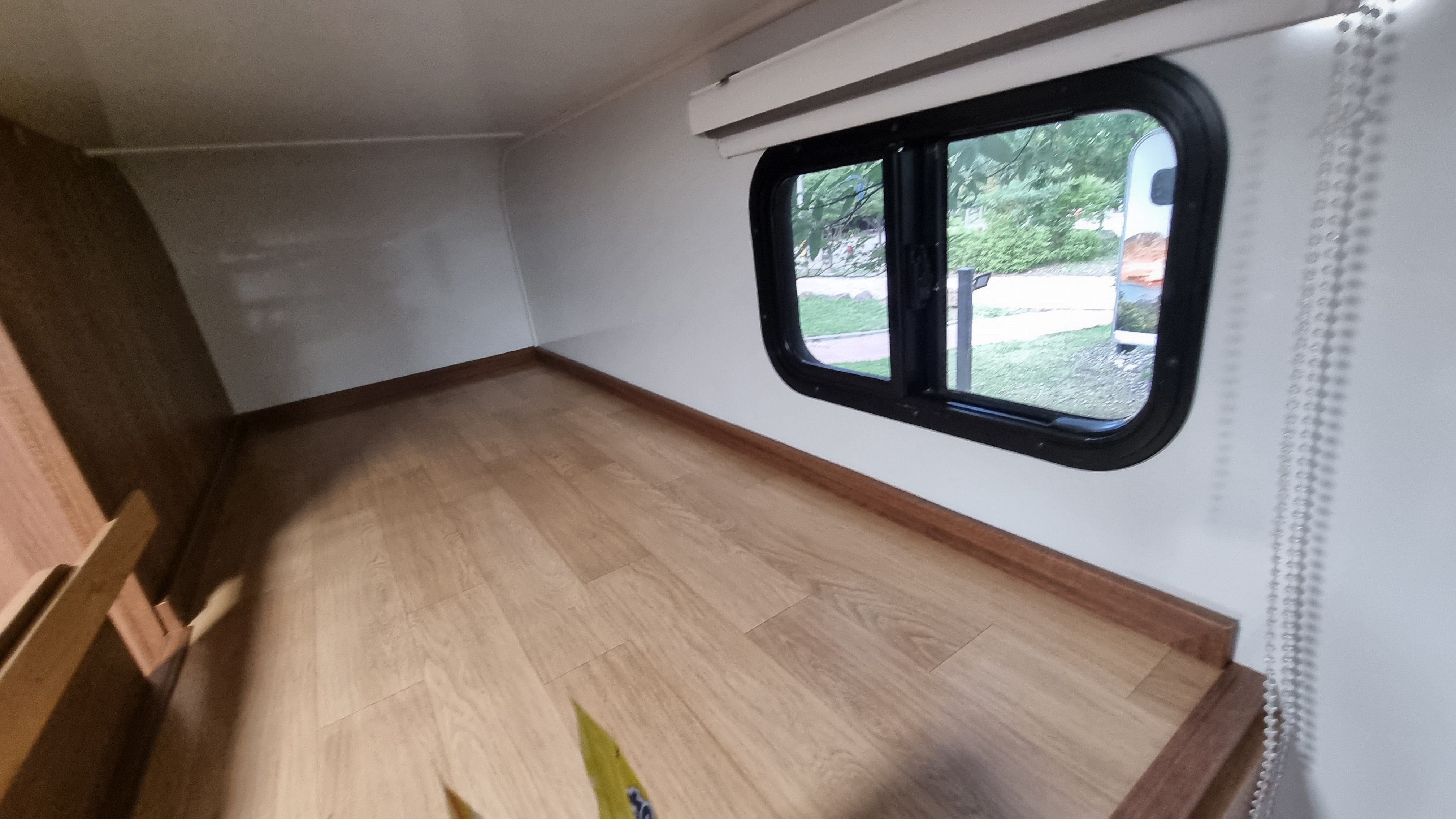 카라반 전면과 측면에 창이 있어 낮에는 실내가 환하고 개방감이 좋았습니다.