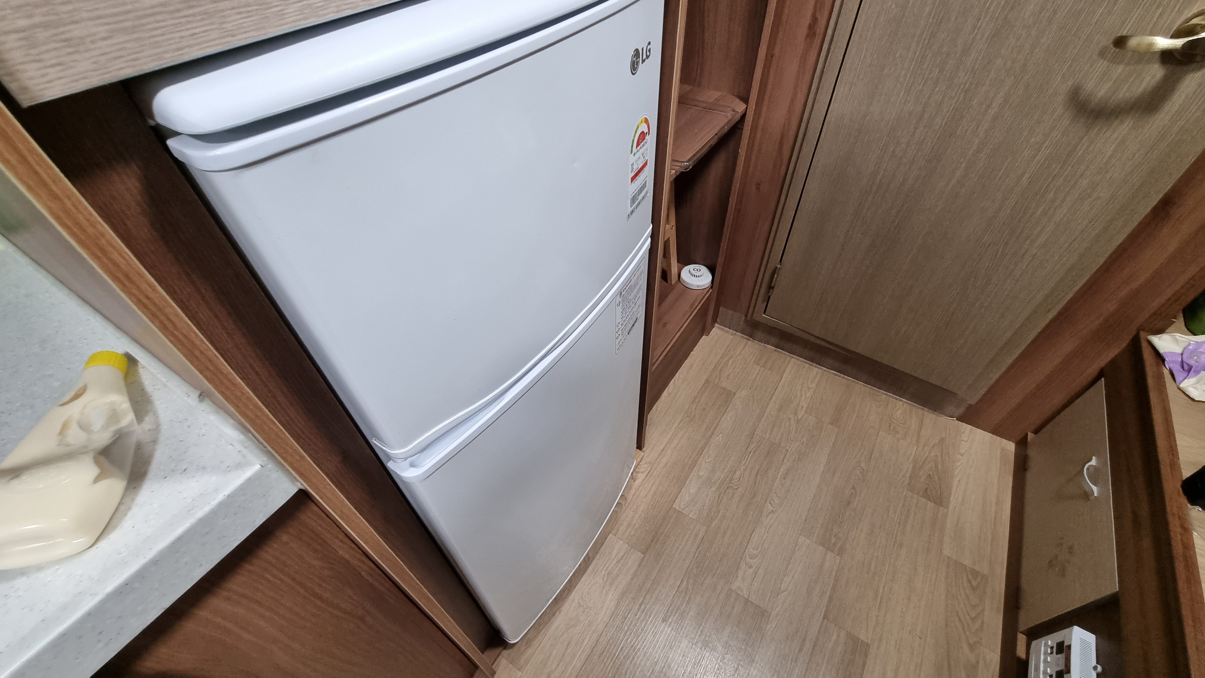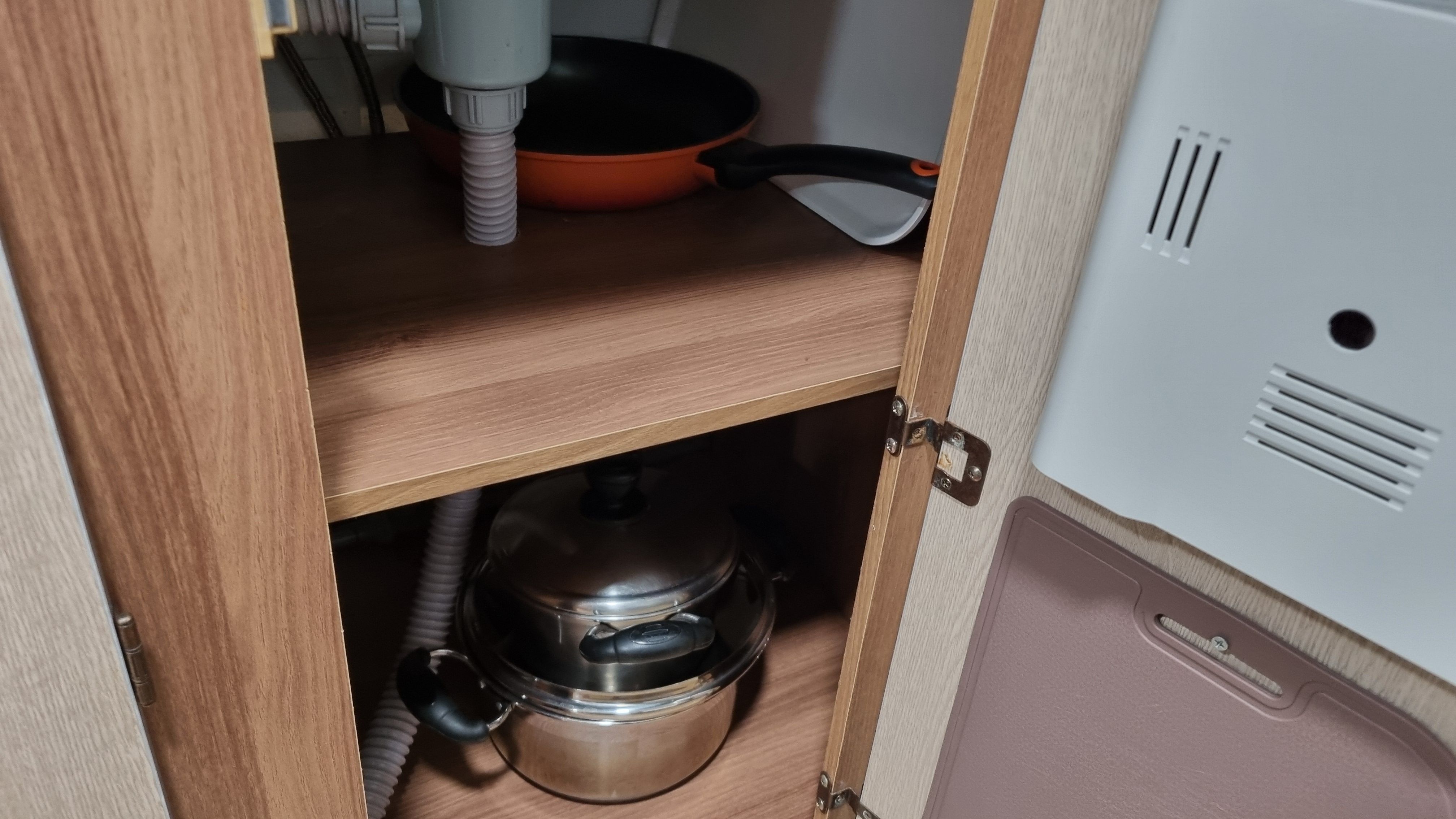 소형 냉장고는 2~3일치 식재료 보관에 충분했고, 옷장·상부 선반·신발장 등 수납공간도 잘 배치돼 있습니다.