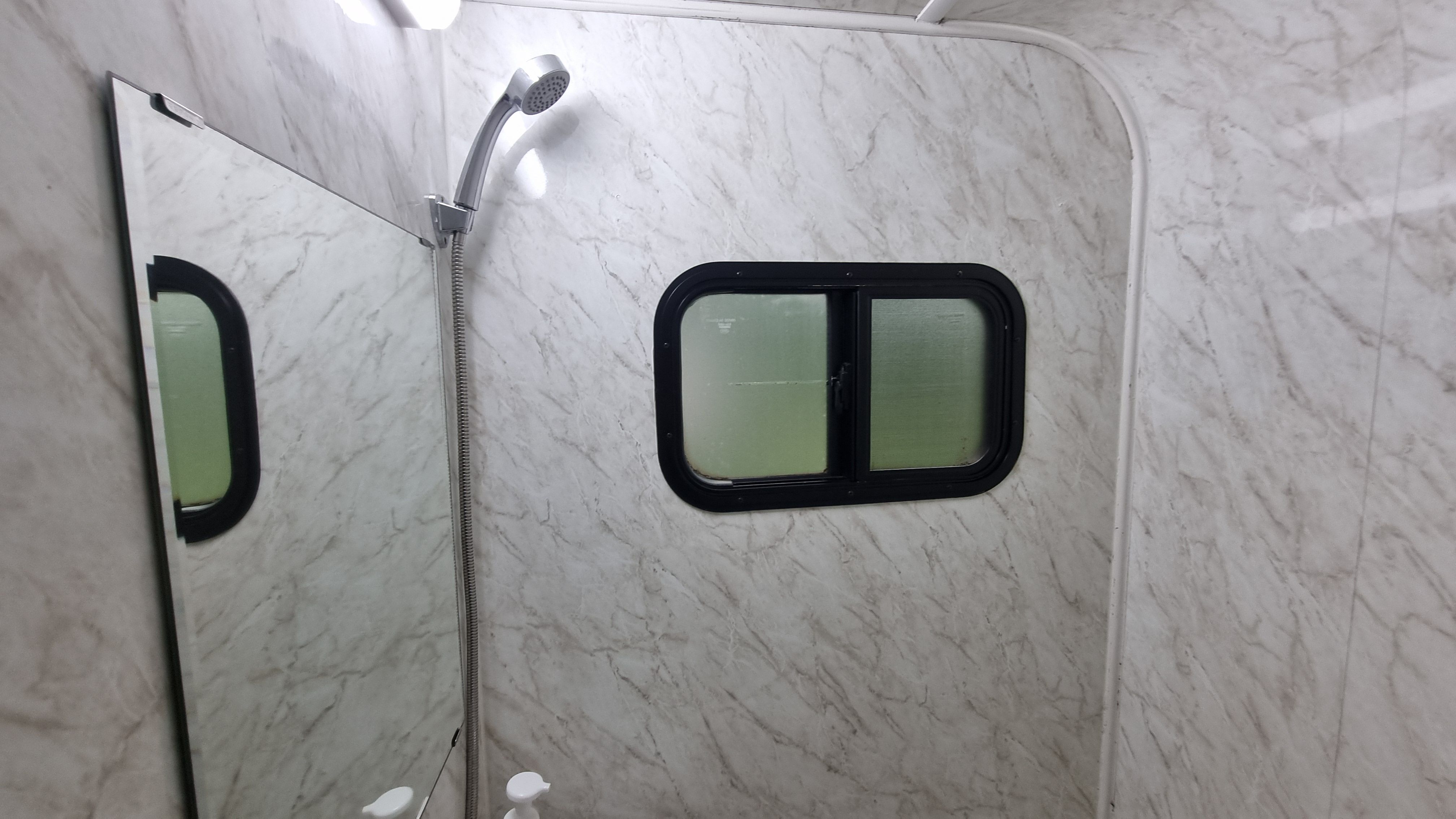 화장실과 샤워기가 함께 설치되어 있는데 1인이 사용하기 에는 충분하고 수압도 좋아서 사용하는데 전혀 불편함이 없습니다. 다만 유난히 설악동 야영장 카라반이 울림이 좀 심해서 화장실 사용중 놀라기도 하죠 ㅎ.
