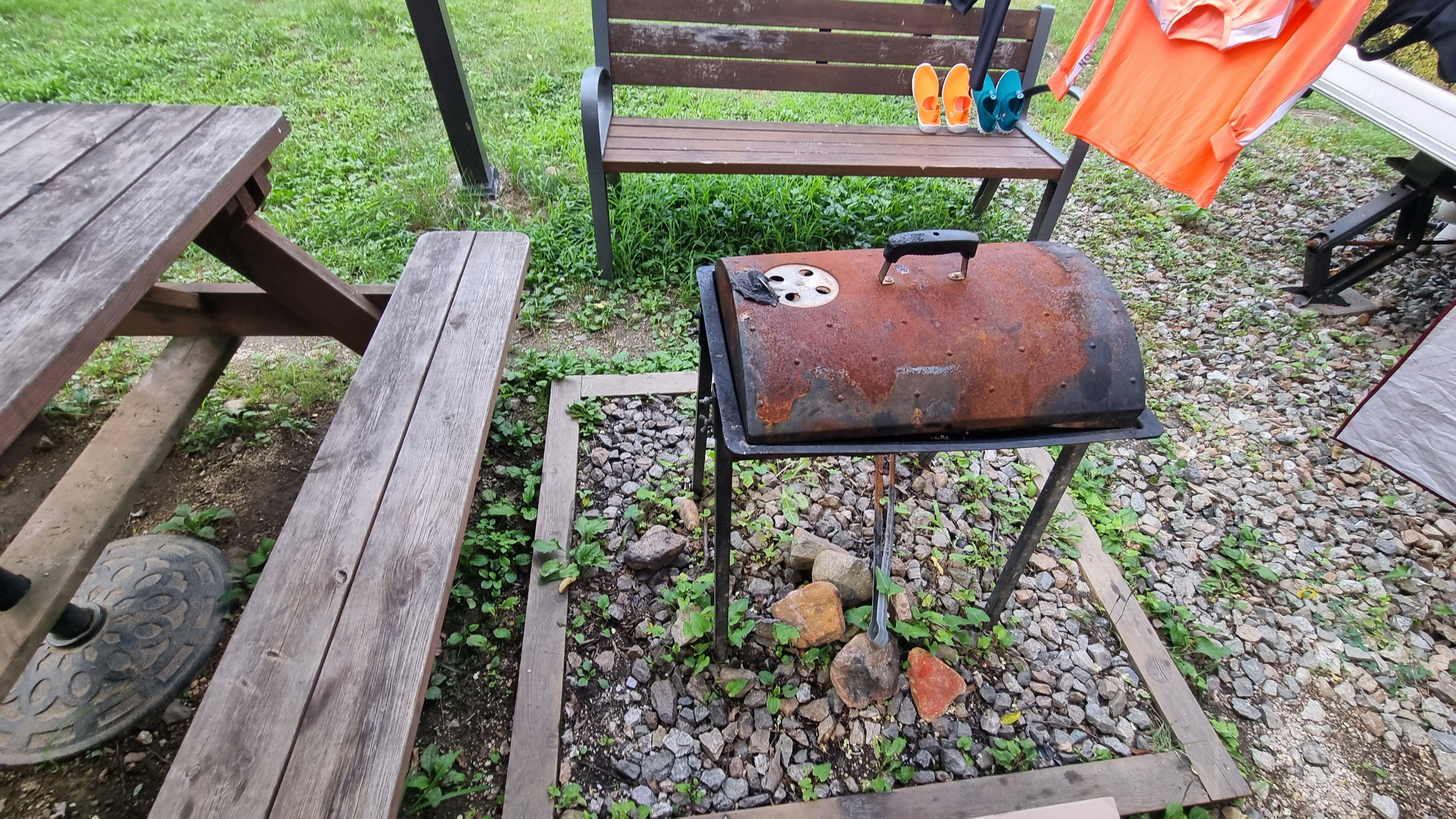 외부 테이블 옆에는 화로대가 크것이 있는데 바베큐를 즐길수 있게 해 놓았습니다. 하지만 한여름이라 주변에 카라반에서도 한분도 바베큐를 하는분들은 안계시더군요. 여름이 지나고서는 좋은 분위기가 될듯합니다.