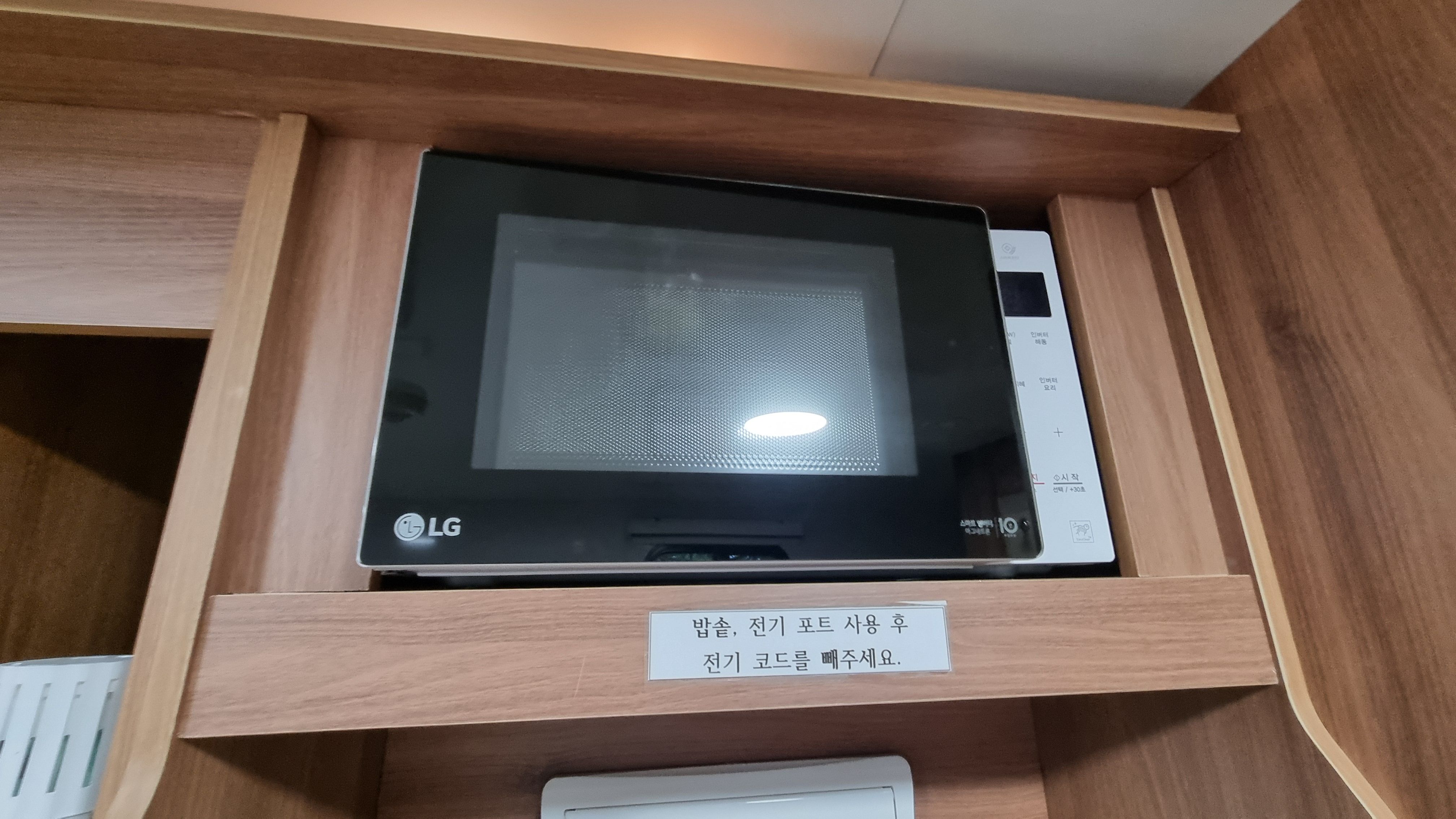 입구 침대옆에 작은티비가 있습니다. 신발전 아랫쪽에 멀티탭이 있으니 외부에서 전기를 사용할때 멀티탭을 연결해서 사용할 수가 있습니다.
