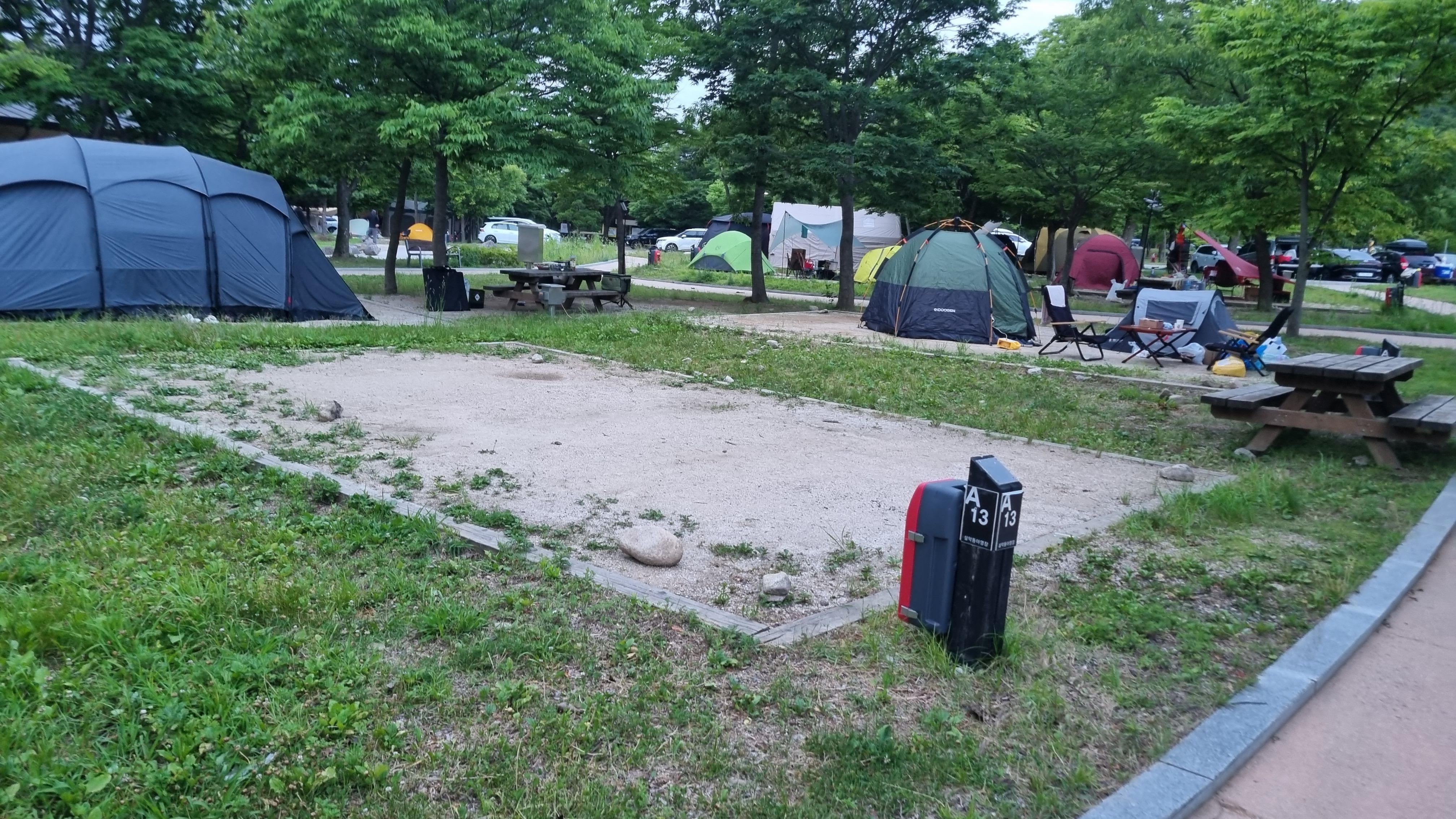 보행통로를 지나 계속해서 설악산캠핑장 a12번 입니다. 이곳 캠핑장의 사이트들은 번호가 지그재그로 되어있어서 설악동야영장배치도 와는 위치가 살짝 다릅니다.