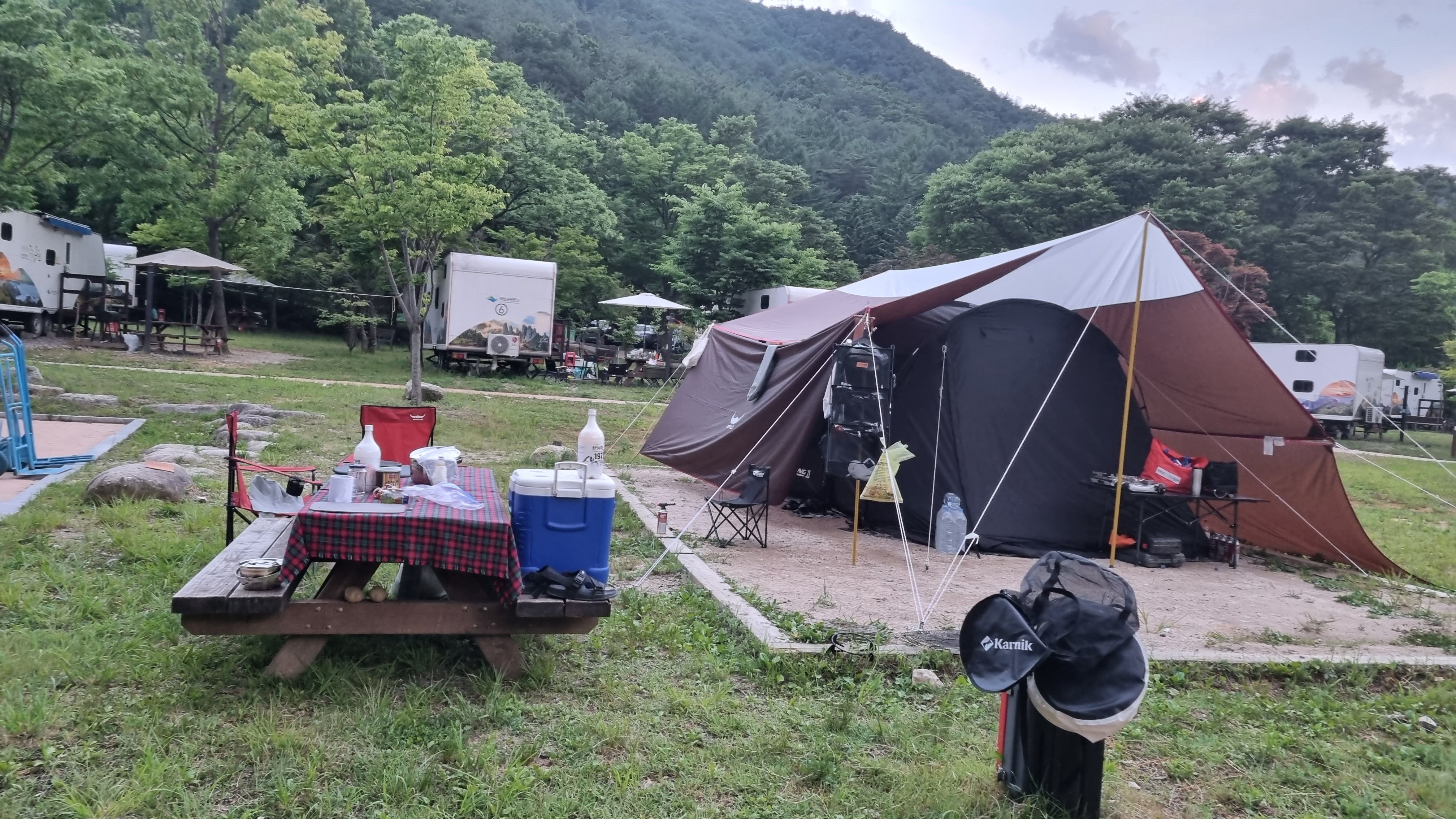 설악동캠핑장 a17과 그옆의 a15번 입니다. 역시 뒤쪽 나무그늘이 좀 있고 사이트크기가 워낙에 커서 사진에서 처럼 대형에어텐트나 소형2개동을 설치해도 무난한 공간입니다.