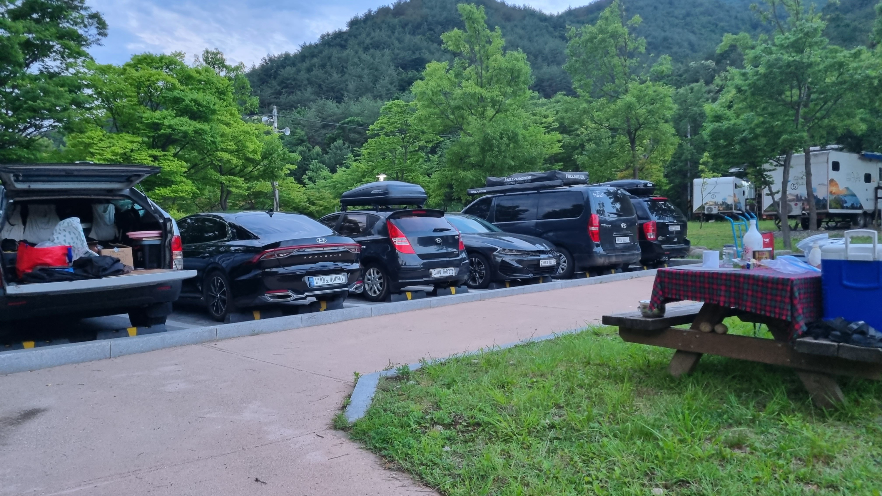 설악동캠핑장주차는 a영지중 데크사이트는 바로옆에 가능하고 그외 7~24번까지는 별도의 주차공간에 주차를 하고 수레를 이용하여 짐을 날라야하는데 거리가 그리 멀지는 않습니다.