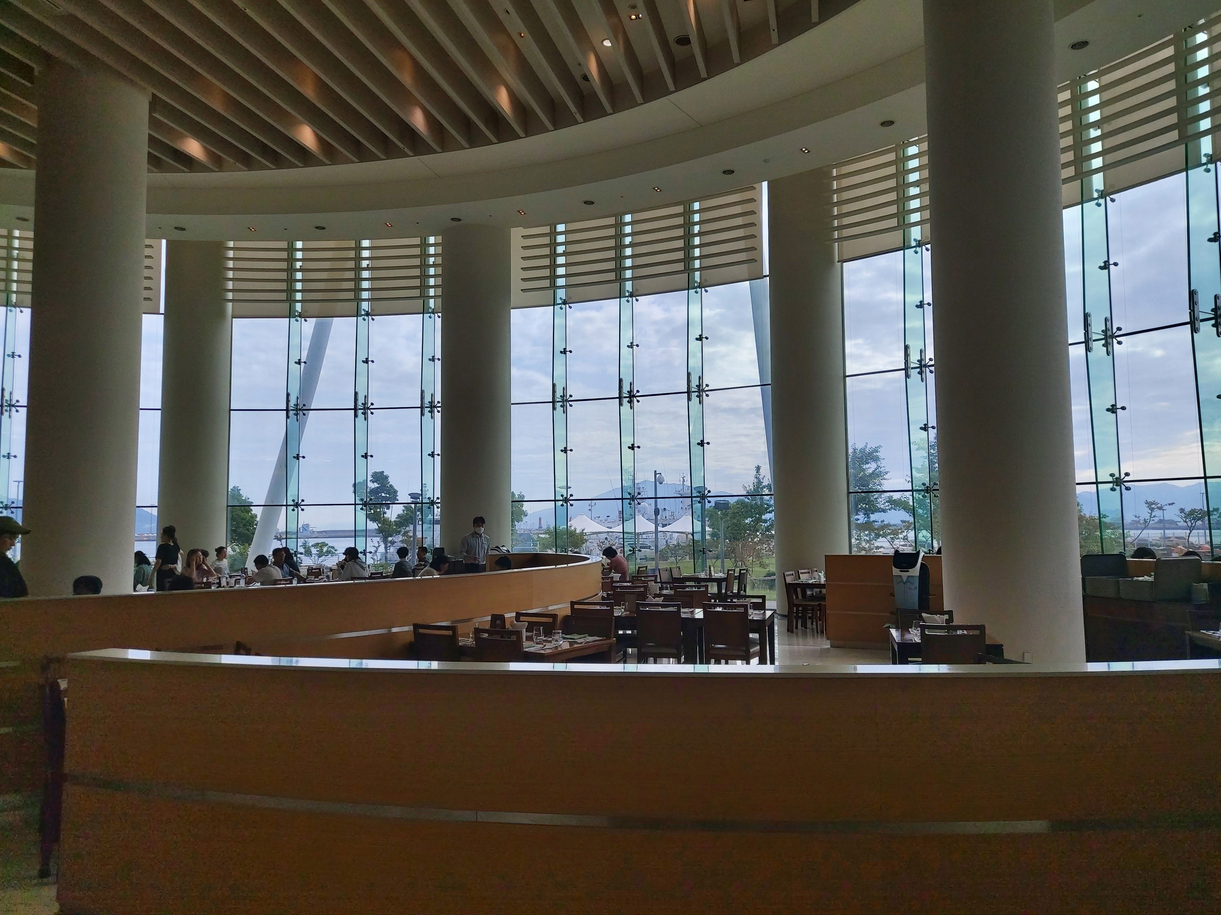 넓은 창으로 바다를 내려다볼 수 있어, 조식 시간대임에도