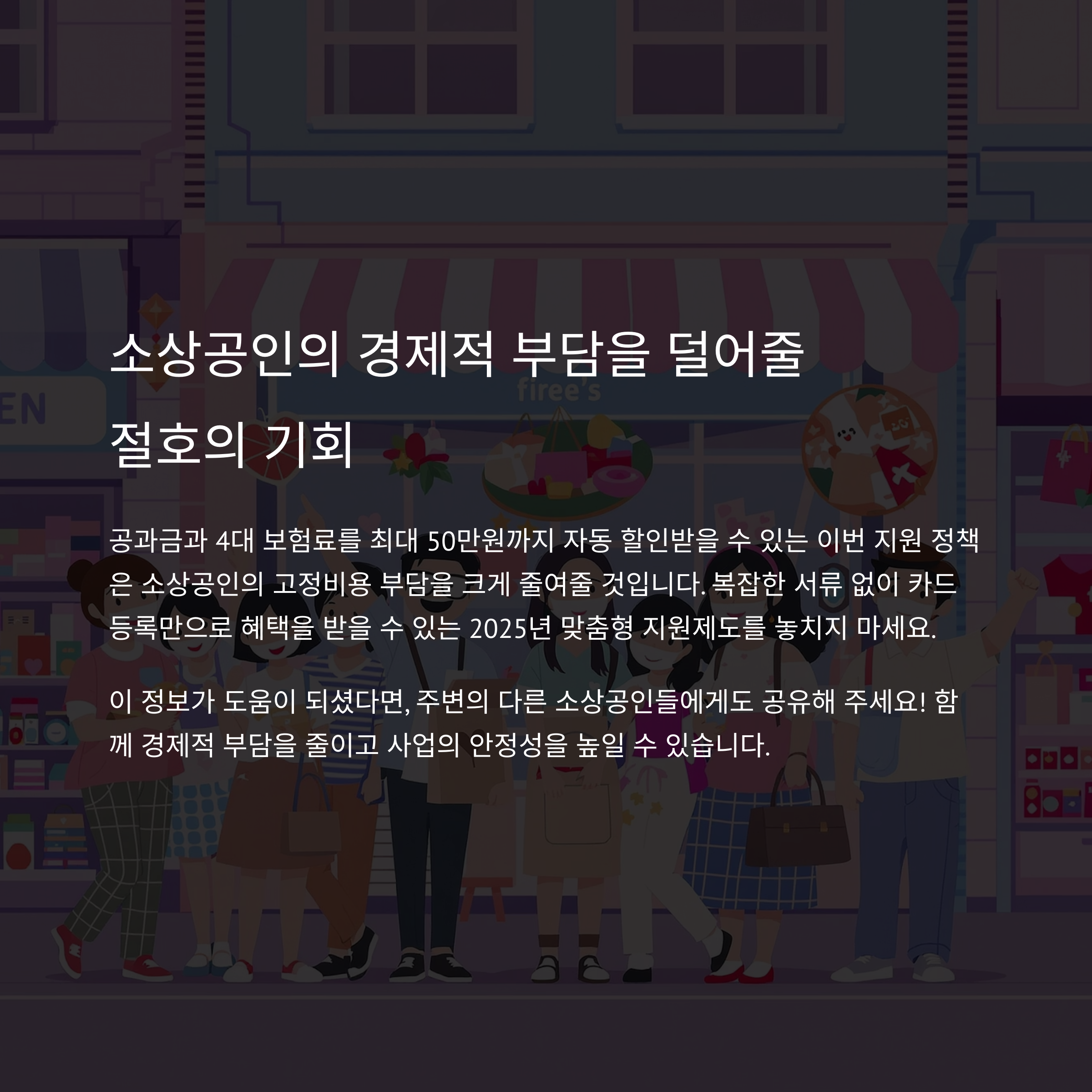 복잡한 서류도 없고 카드만 등록하면 자동 할인되는 2025년 소상공인 맞춤형 지원제도입니다.