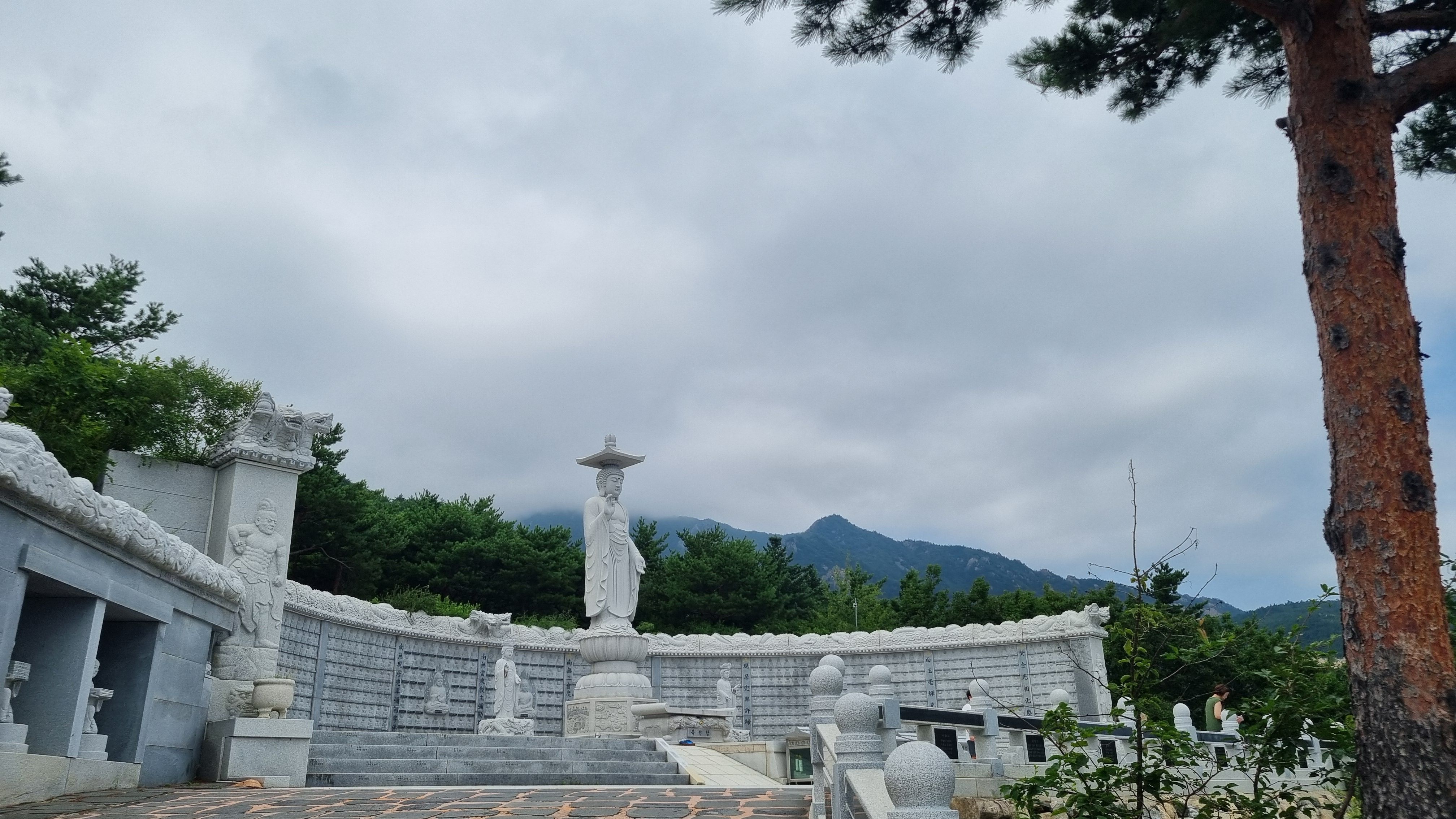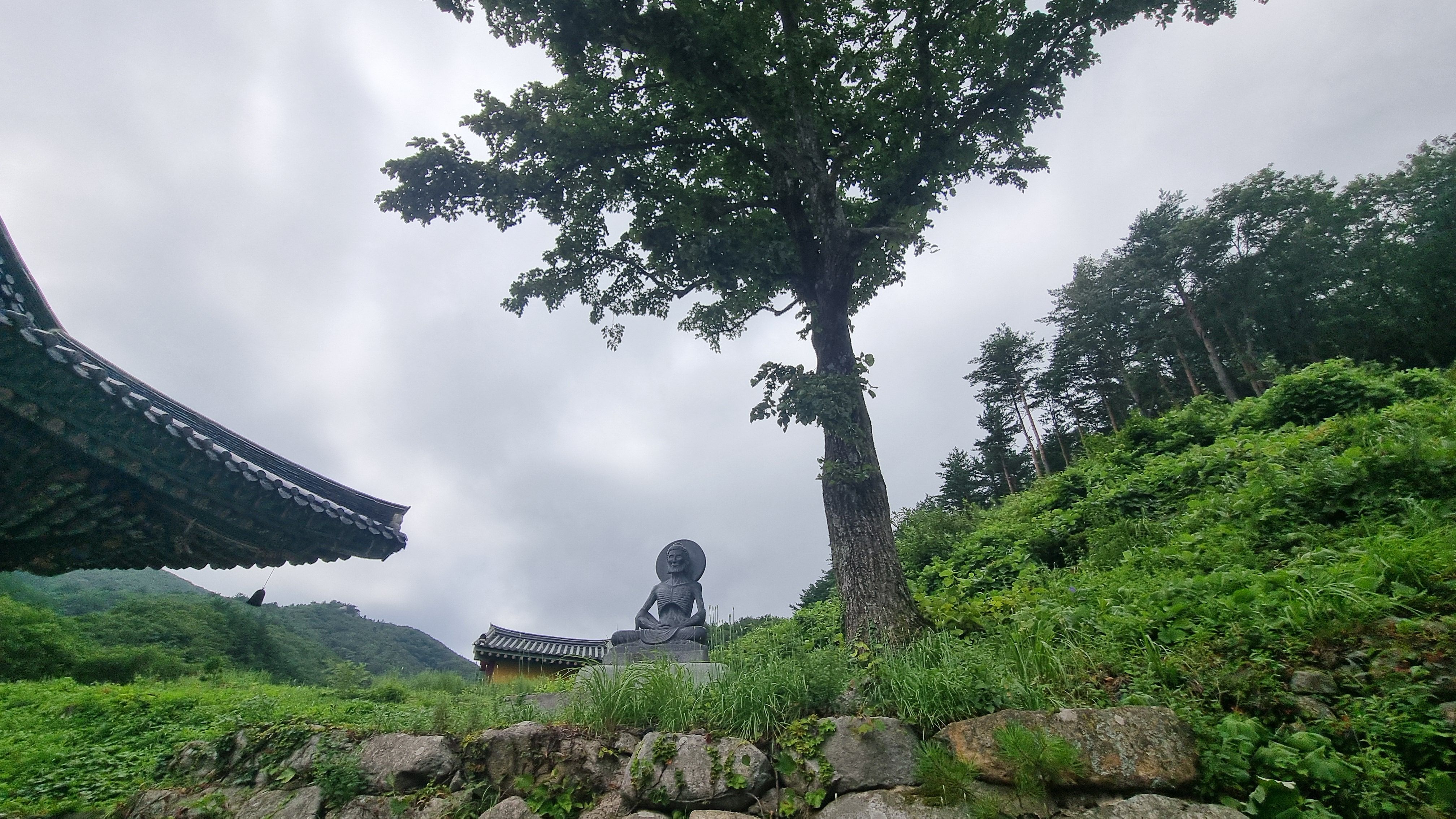 부처님의 고행을 표현한 불상이 나무 아래 조성되어 있네요. 기왕이면 보리수를 심어 놓았으면 의미가 있었을까 싶어요.