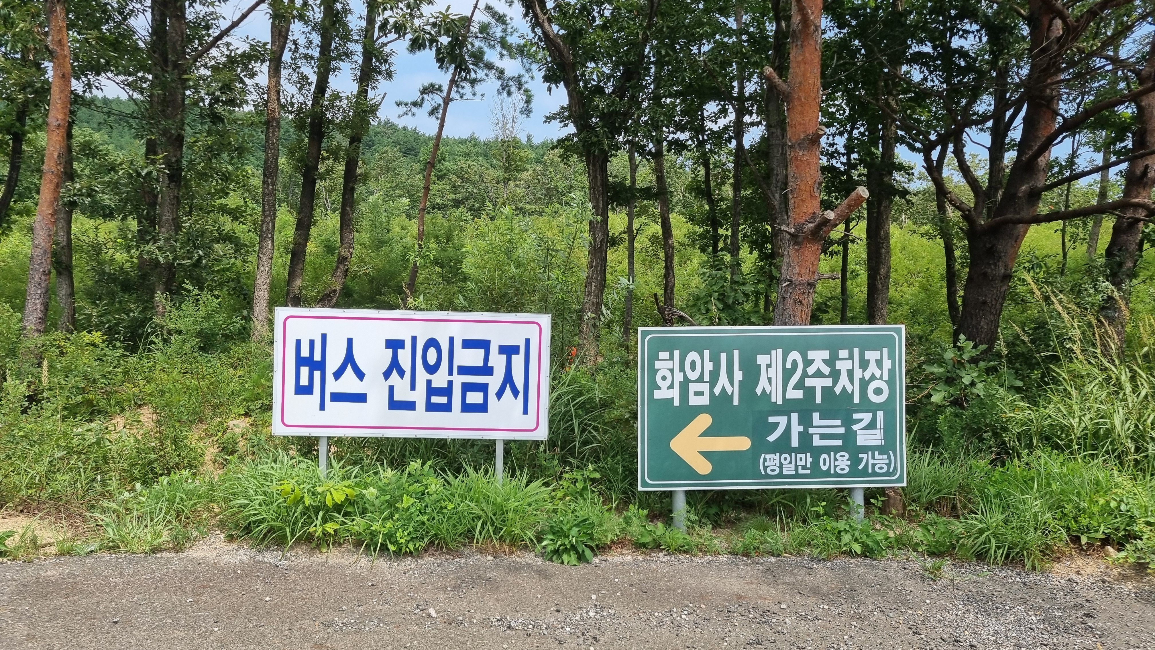 끝쪽에 푯말이 있는데 화암사 2주차장이 윗쪽으로 있나봐요. 평일만 이용이 가능하다고해서 저희는 주말에 간지라 포기하고 주차를 하고 걷기로 했죠.