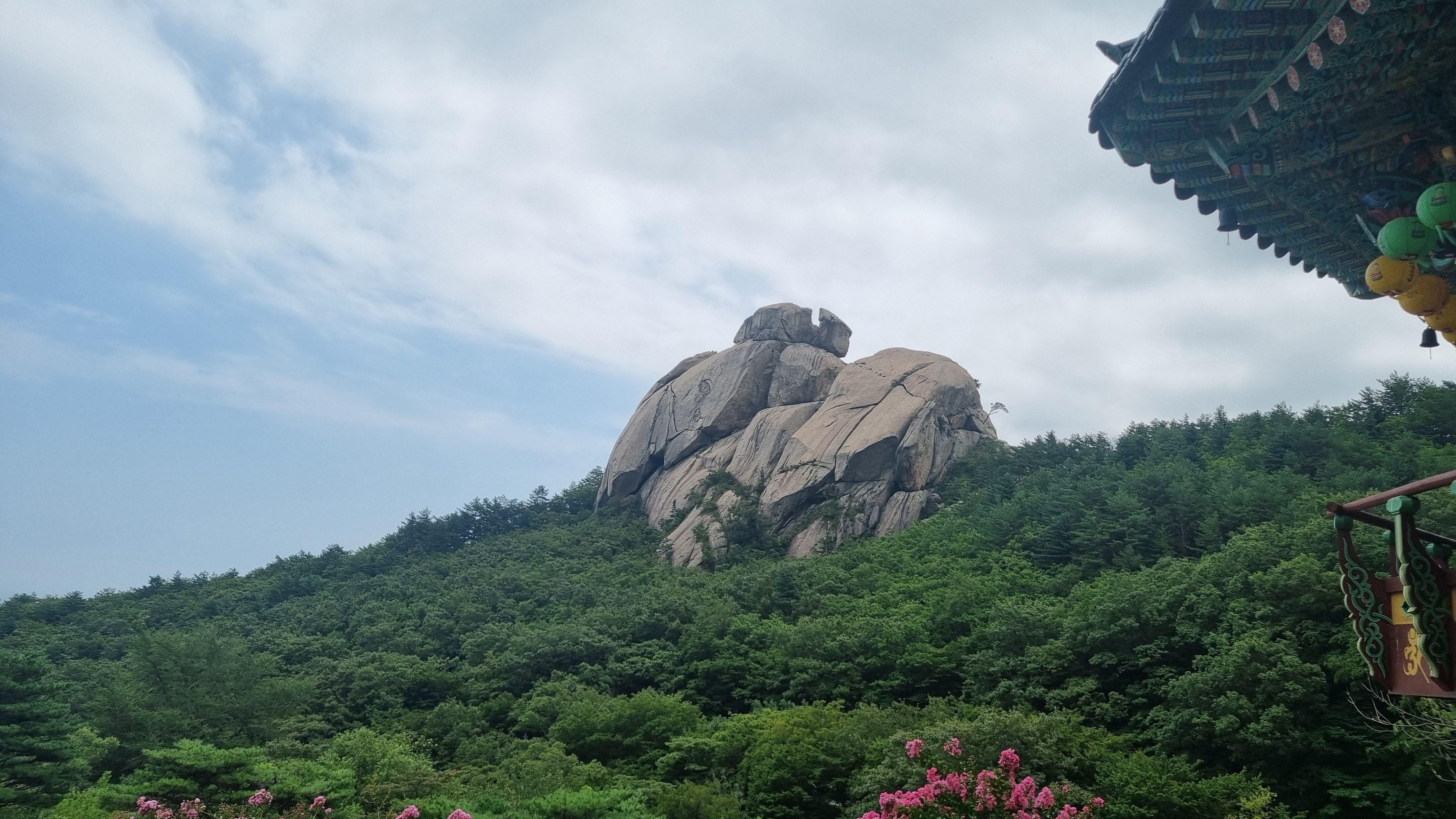 금강산 화암사에 상징과도 같은 수바위 모습입니다. 예전 이곳에서 수도하던 고승들이 저 수바위 정상에 올라 수행을 했다고 전해집니다.