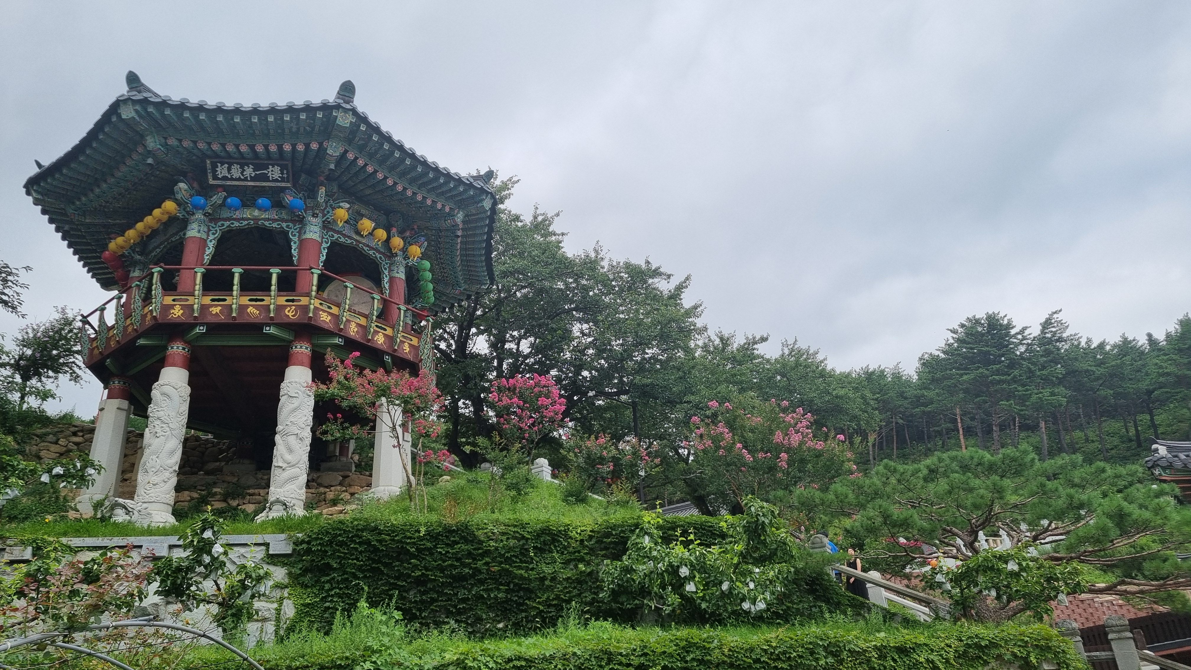 미륵전 앞에서 바라본 속초시내와 동해바다 전망입니다. 사진상으로는 잘 보이지는 않지만 전망이 진짜 끝내줘요. 이맛에 힘들게 여기를 오나봅니다.