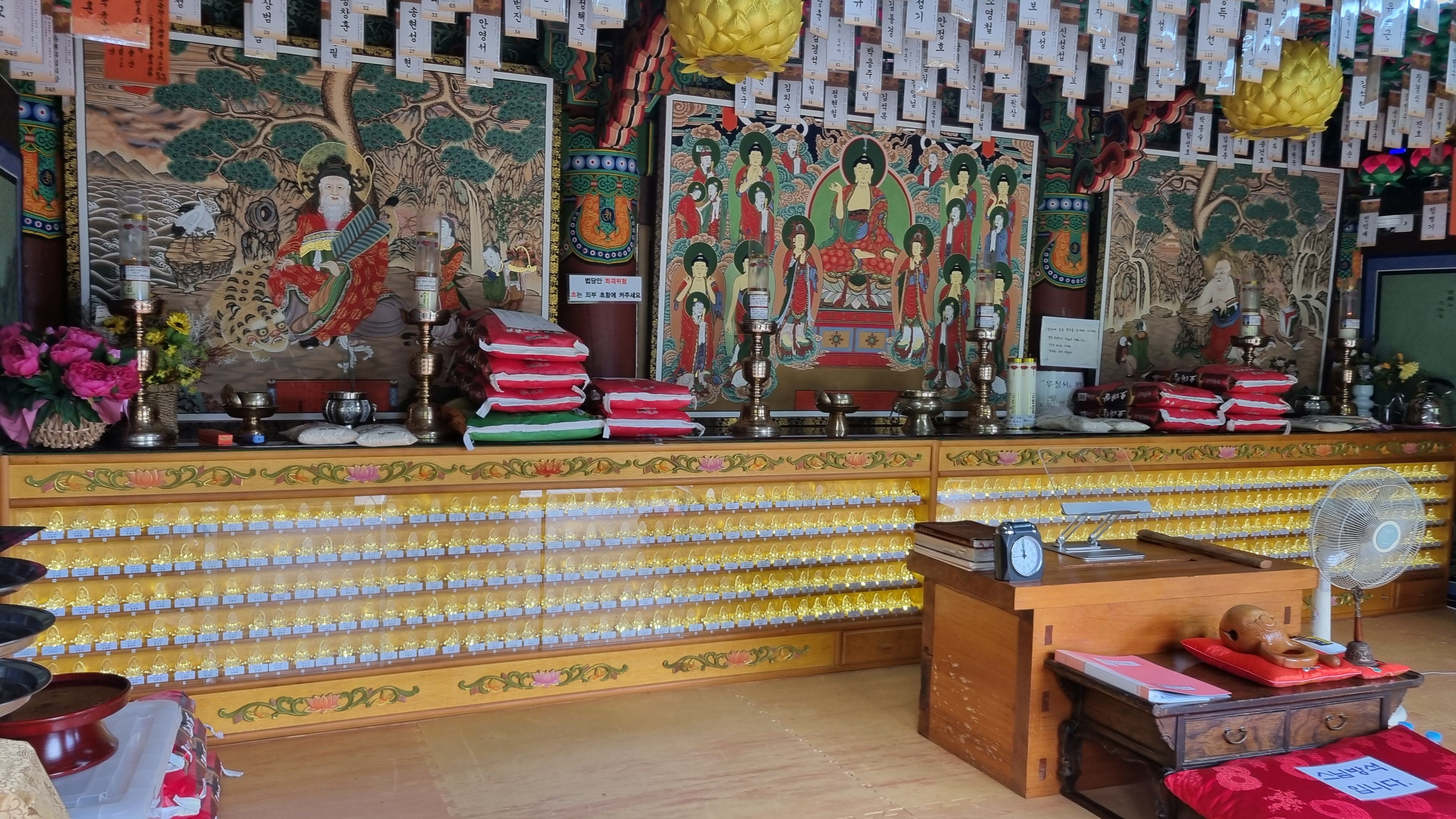 맨위 전각은 스님들의 수행공간이고 삼성각 내부의 모습입니다.