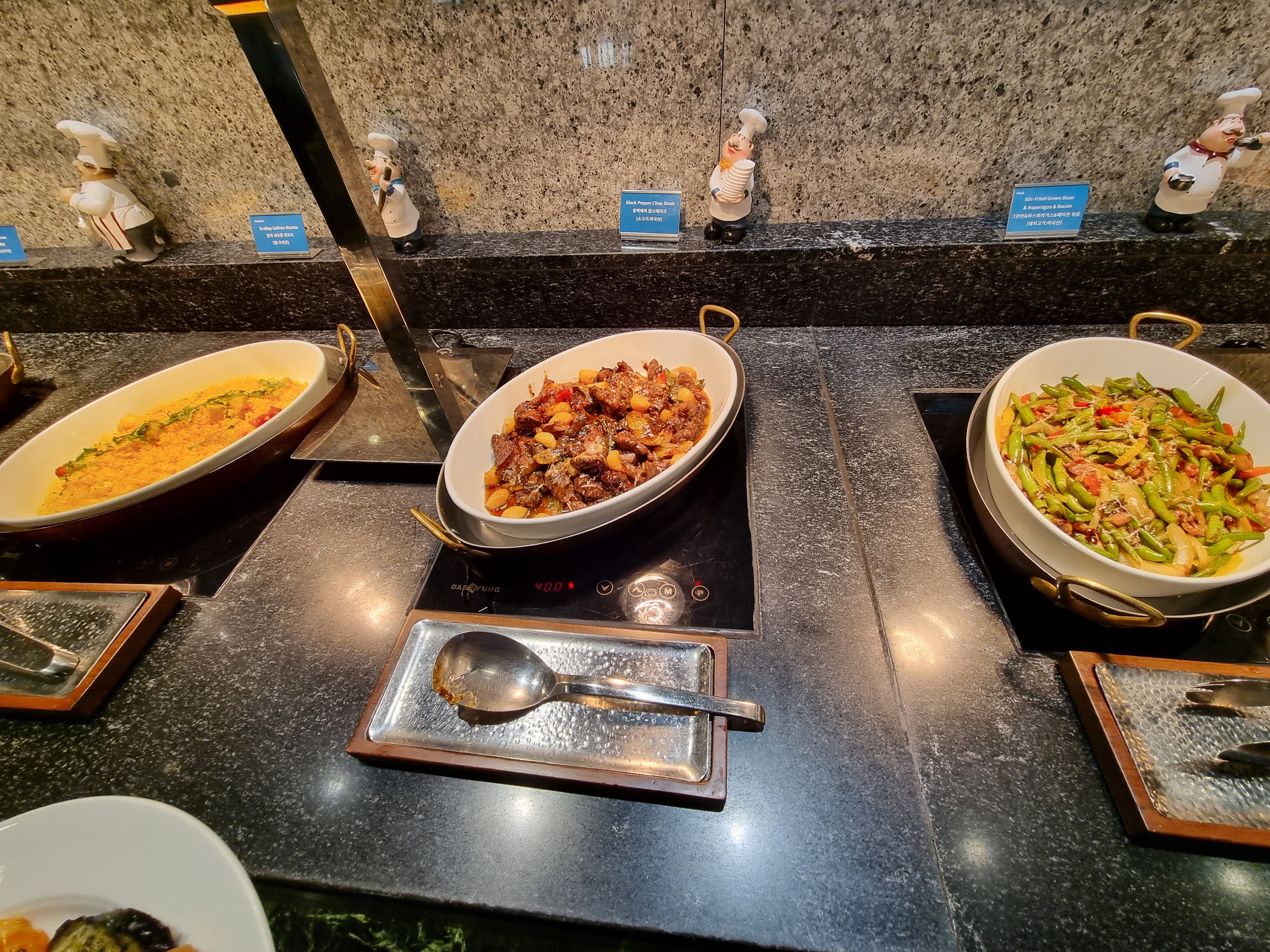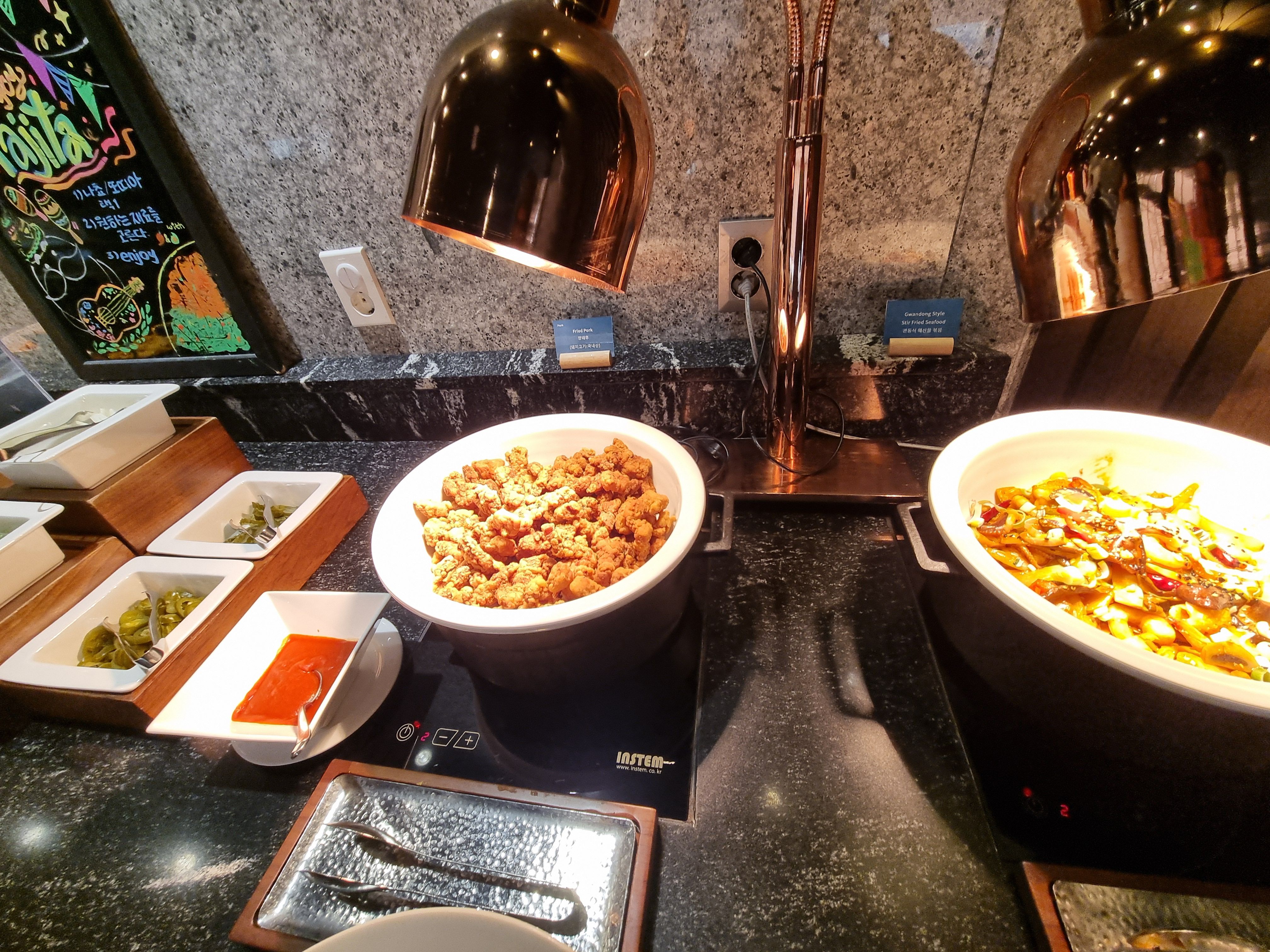 - 오크우드 호텔 뷔페 방문 시 창가 자리를 예약하면 더욱 멋진 뷰를 감상할 수 있습니다. 그러나 운에 맡기는수밖에 없어요.
