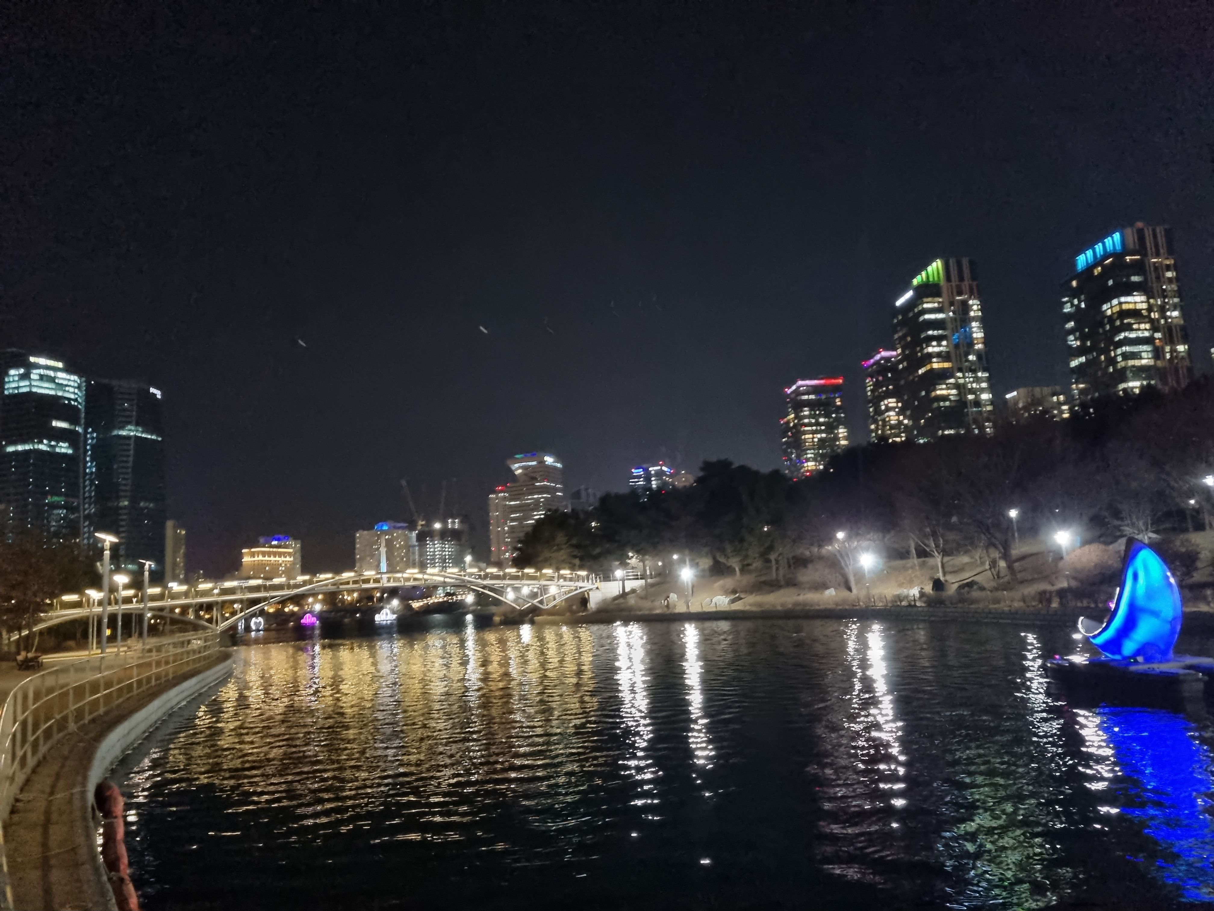 배부르게 오크우드호텔뷔페에서 식사와 술한잔을 즐기고 송도센트럴파크 야간 산책을 즐깁니다. 이곳에 명물이 반달배를 추운날씨에도 아랑곳하지 않고 타는 커플을 보니 우리도 예전에 그랬겠지 하는 생각이 들더군요. 송도에서 1박2일 다음에도 또 이코스를 즐기고 싶네요.