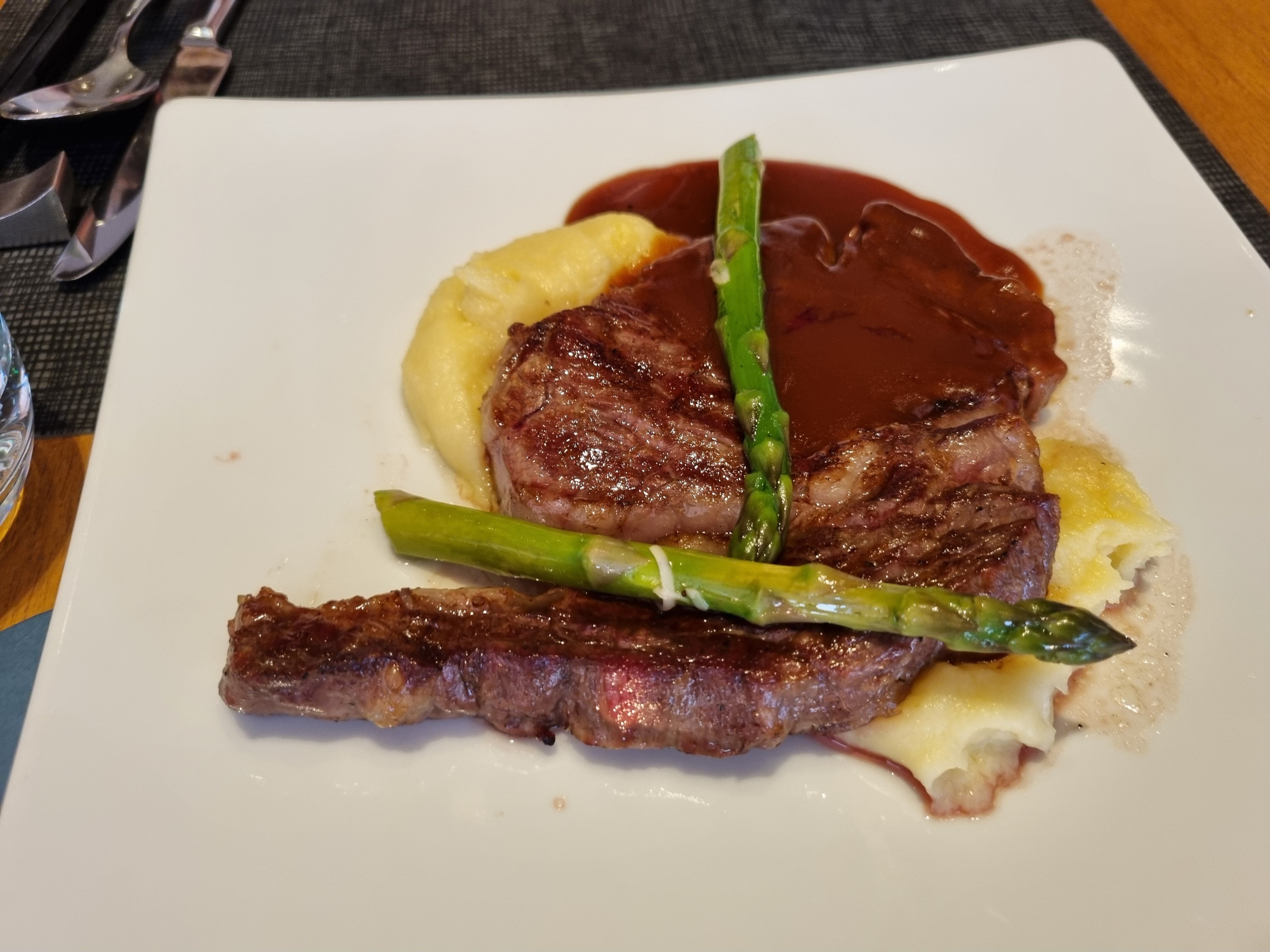 저희는 세트메뉴를 예약했기 때문에 스테이크가 따로 나왔습니다. 오랜만에 맛보는 스테이크맛도 일품이네요.