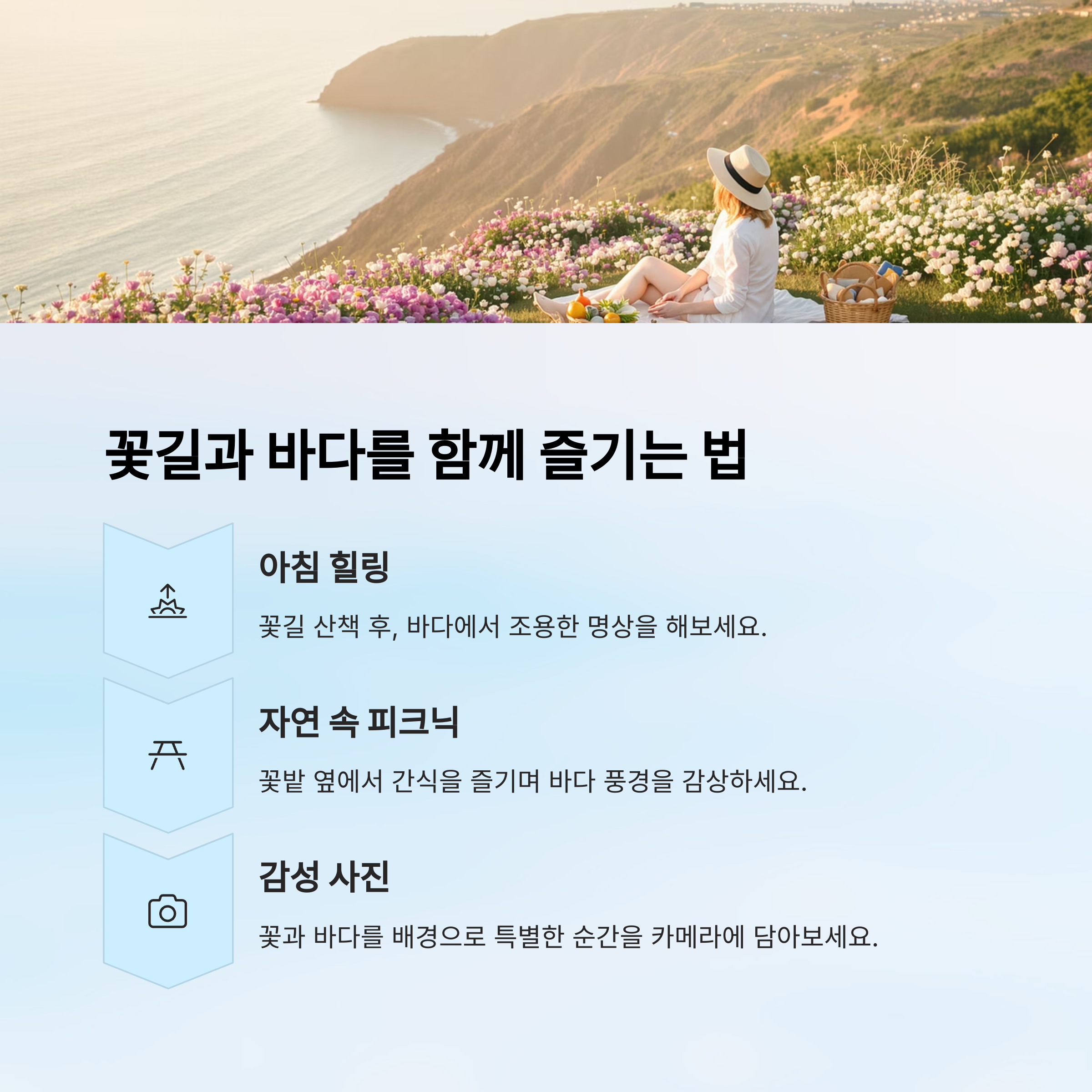 여러분도 이번 여행지를 통해 조용한 꽃길과 바다가 주는 감성을 직접 경험해 보세요.