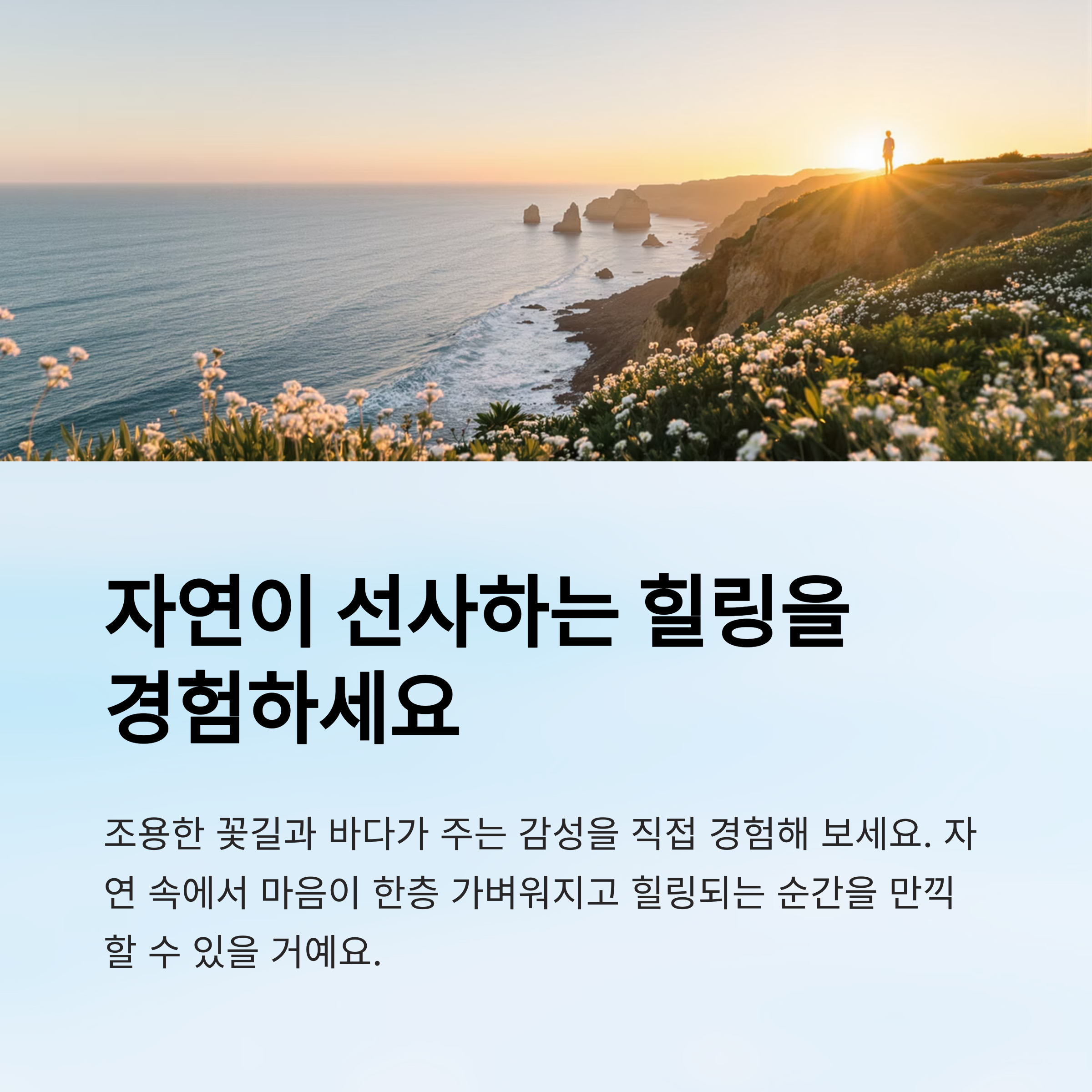 꽃길을 걷고 바다의 향기를 맡으며 진짜 나만의 힐링 여행을 꿈꾸고 있나요?