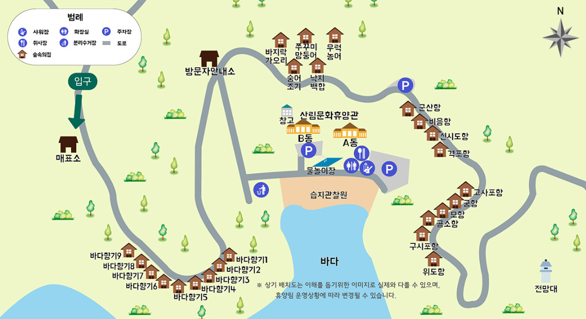 • 산림문화휴양관 – 바닷가에 가까운 원룸형 숙소