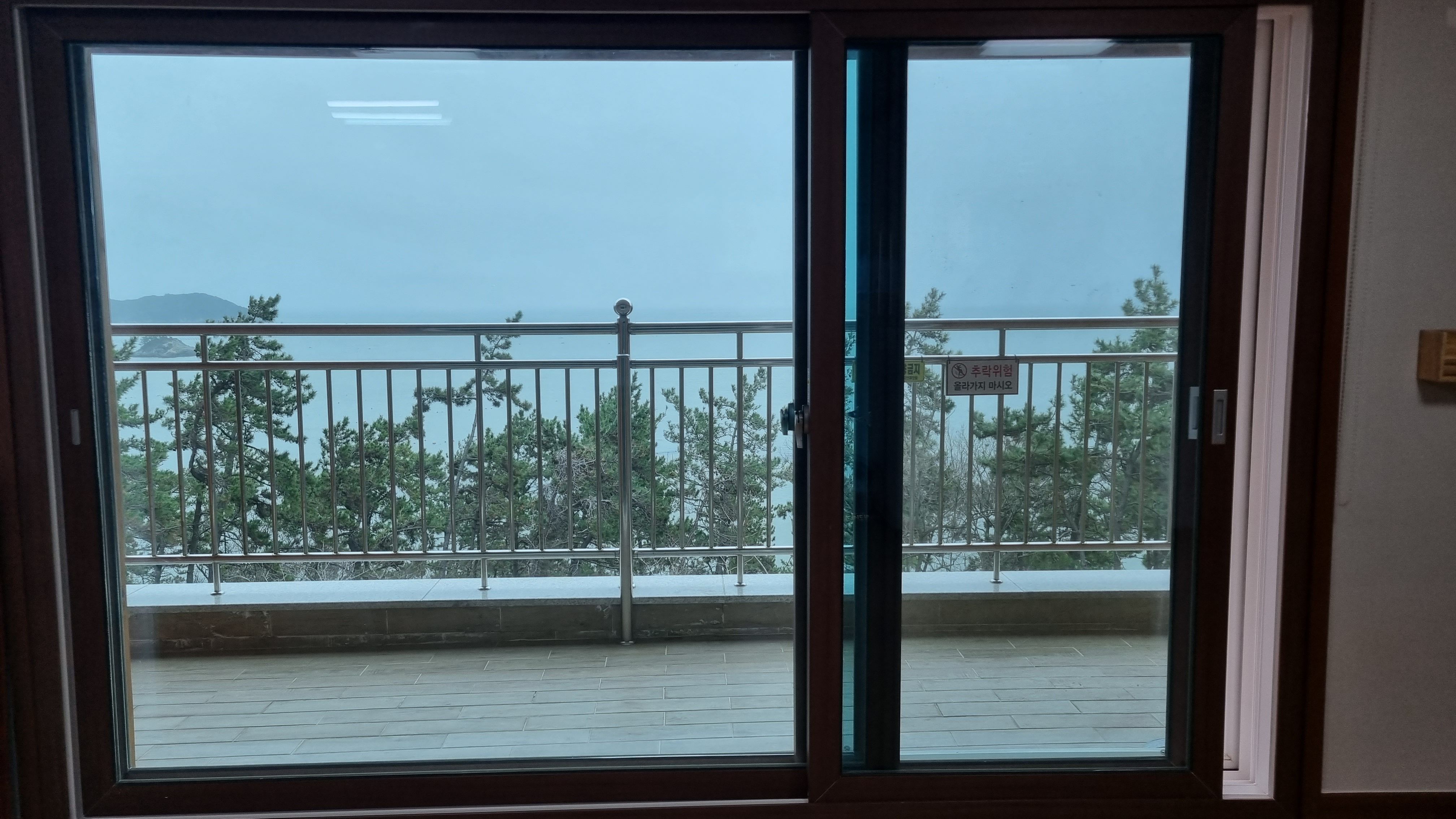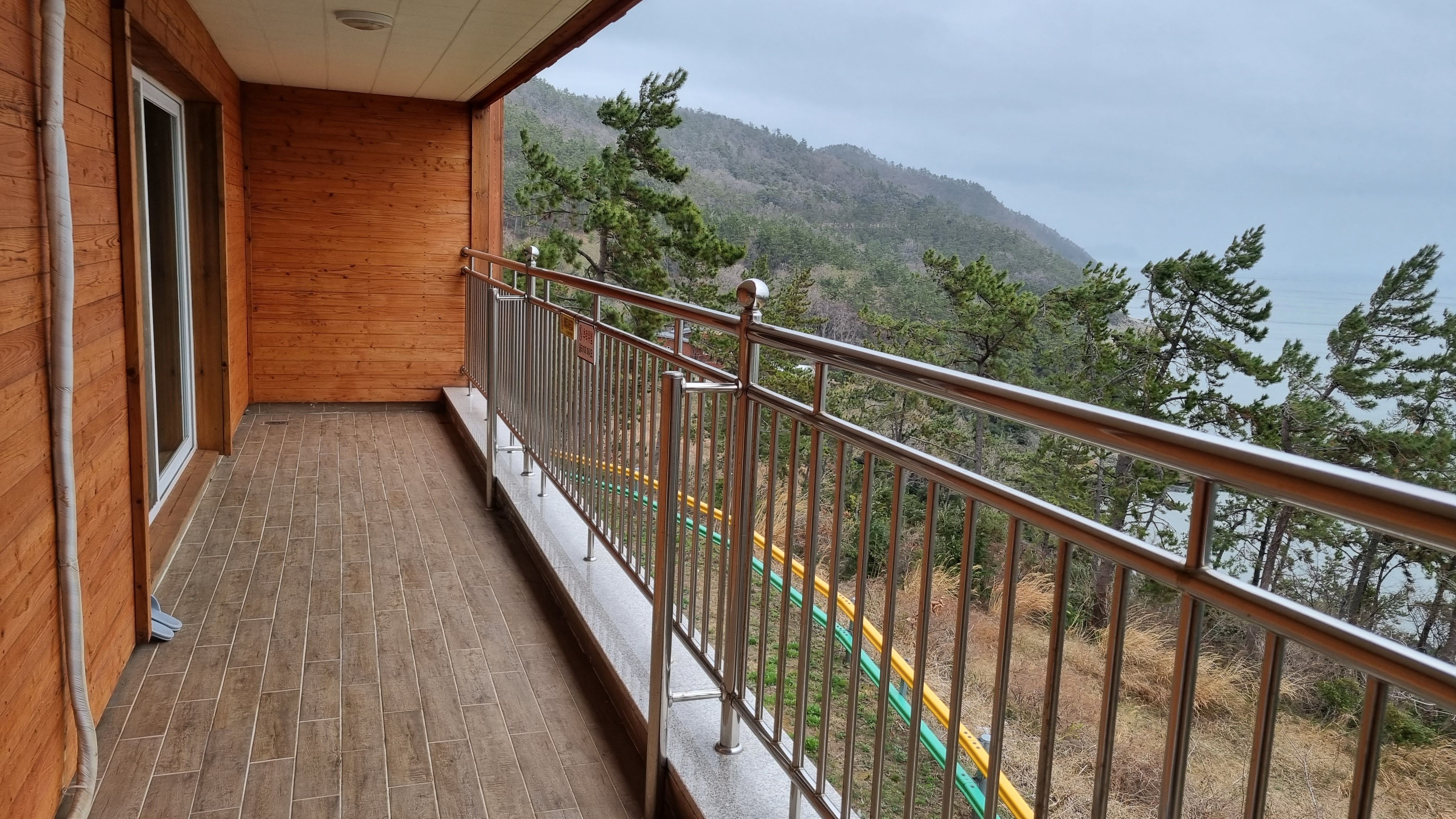 방에서 본 창밖풍경인데요, 이곳 진도자연휴양림숲속의집 돈나무 특징하나 바로 엄청난 크기의 발코니이죠.