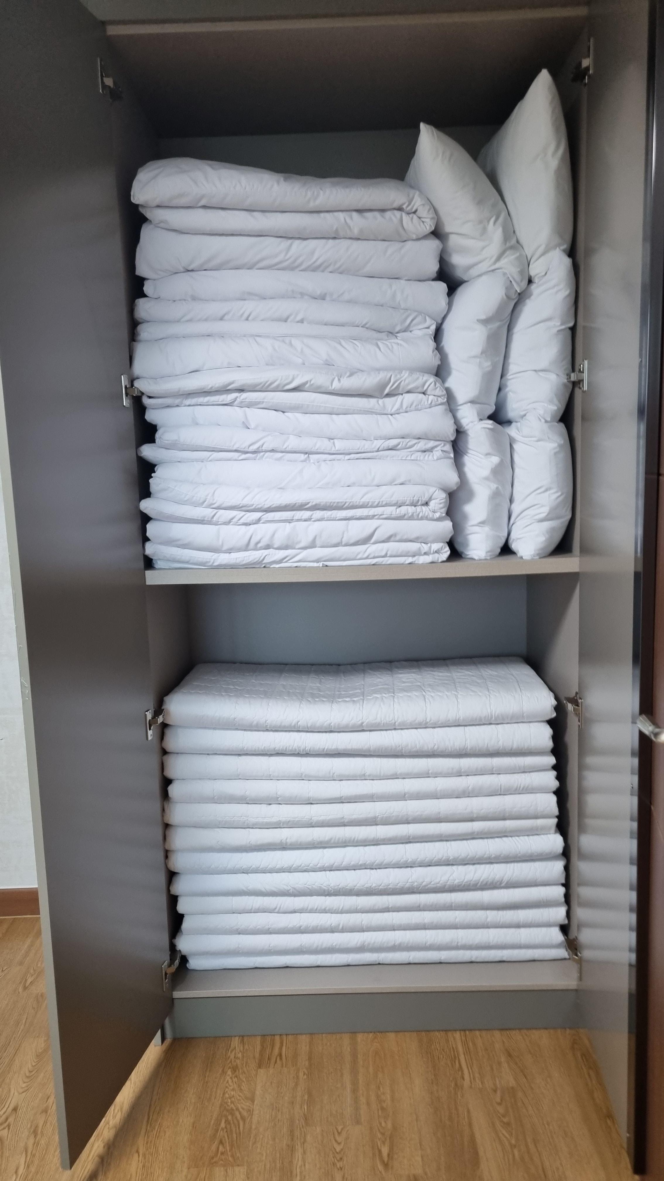 방에서는 3명 여유있게 잠을 청할 수있는 크기이구요, 침구도 깔끔하고 뽀송하더군요.