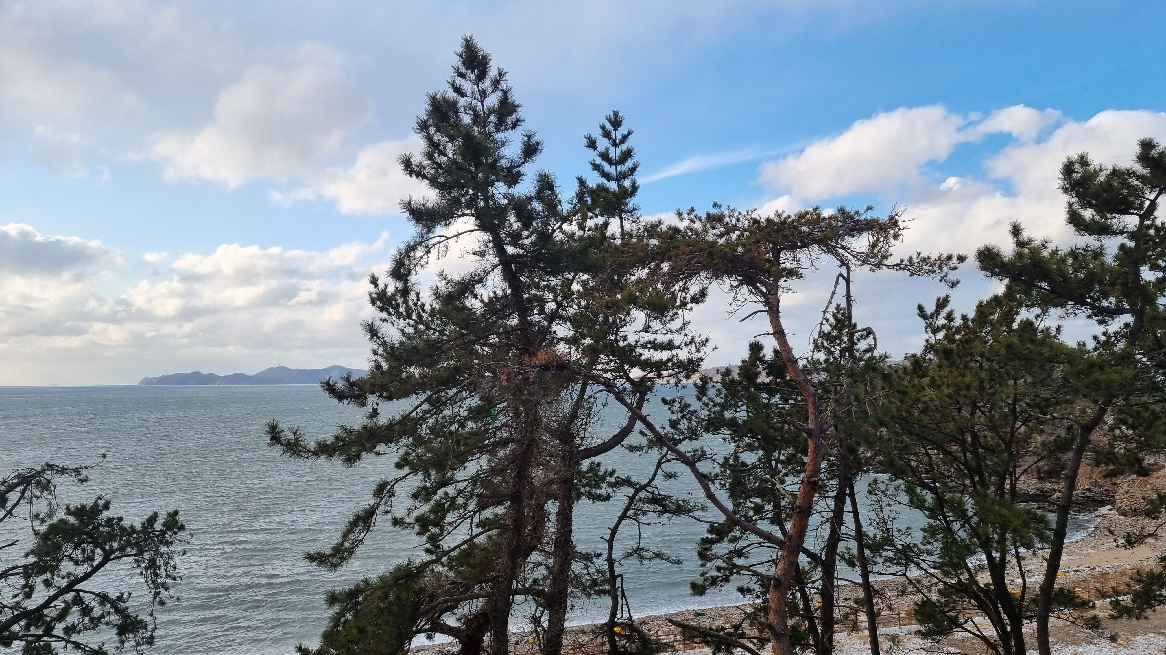 상현달 204호는 해송 숲으로 둘러싸여 있어 탁 트인 전망은 아니지만, 소나무 사이로 보이는 서해 바다가 아름다웠습니다. 국립 신시도 자연휴양림 상현달 전 객실은 오션뷰로 어느 호실에서든 아름다운 서해 바다를 감상할 수 있습니다.