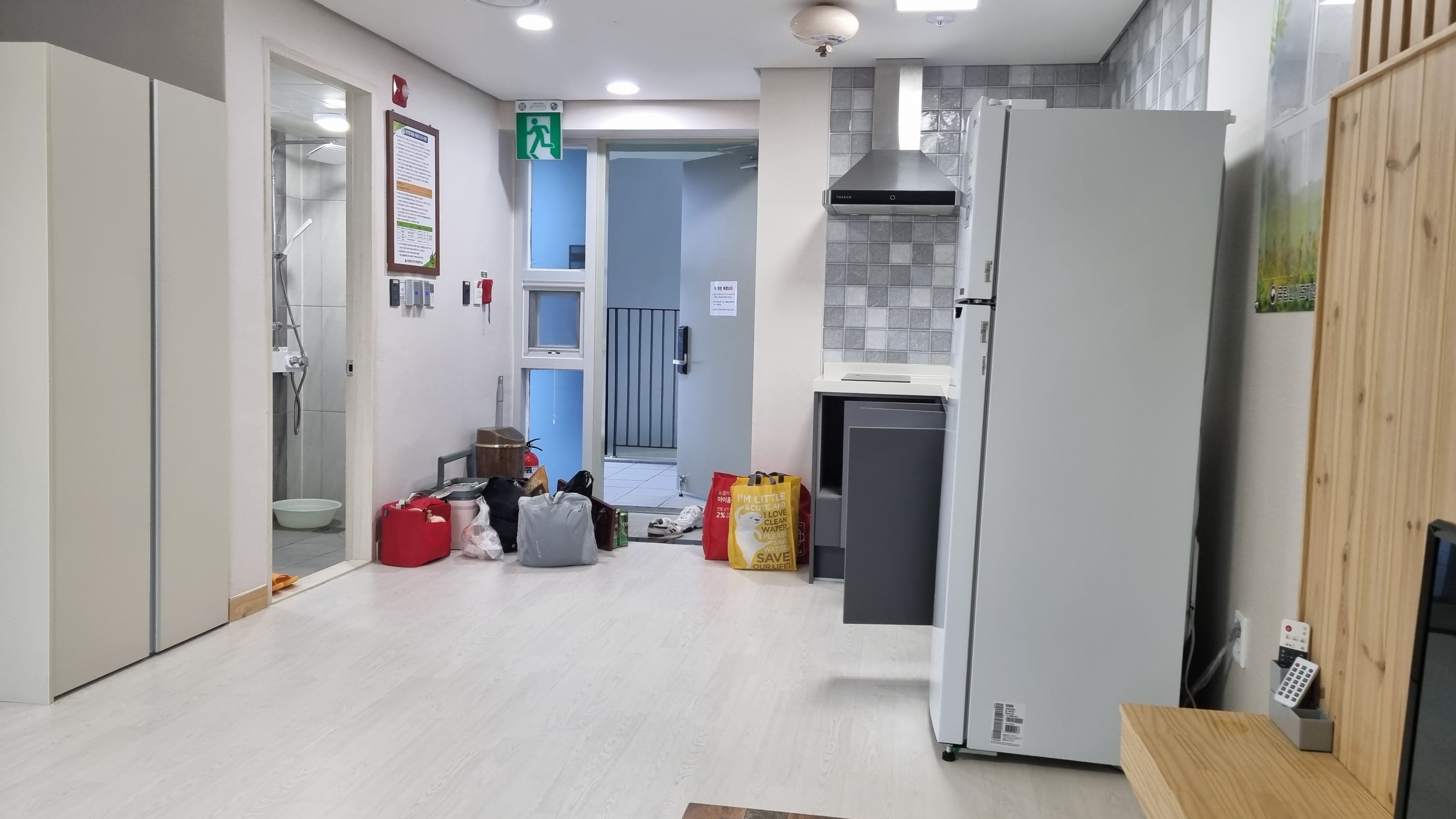 입구쪽의 모습입니다. 주방 주변도 넓어서 여러사람이 왔다갔다 해도 문제 없습니다.