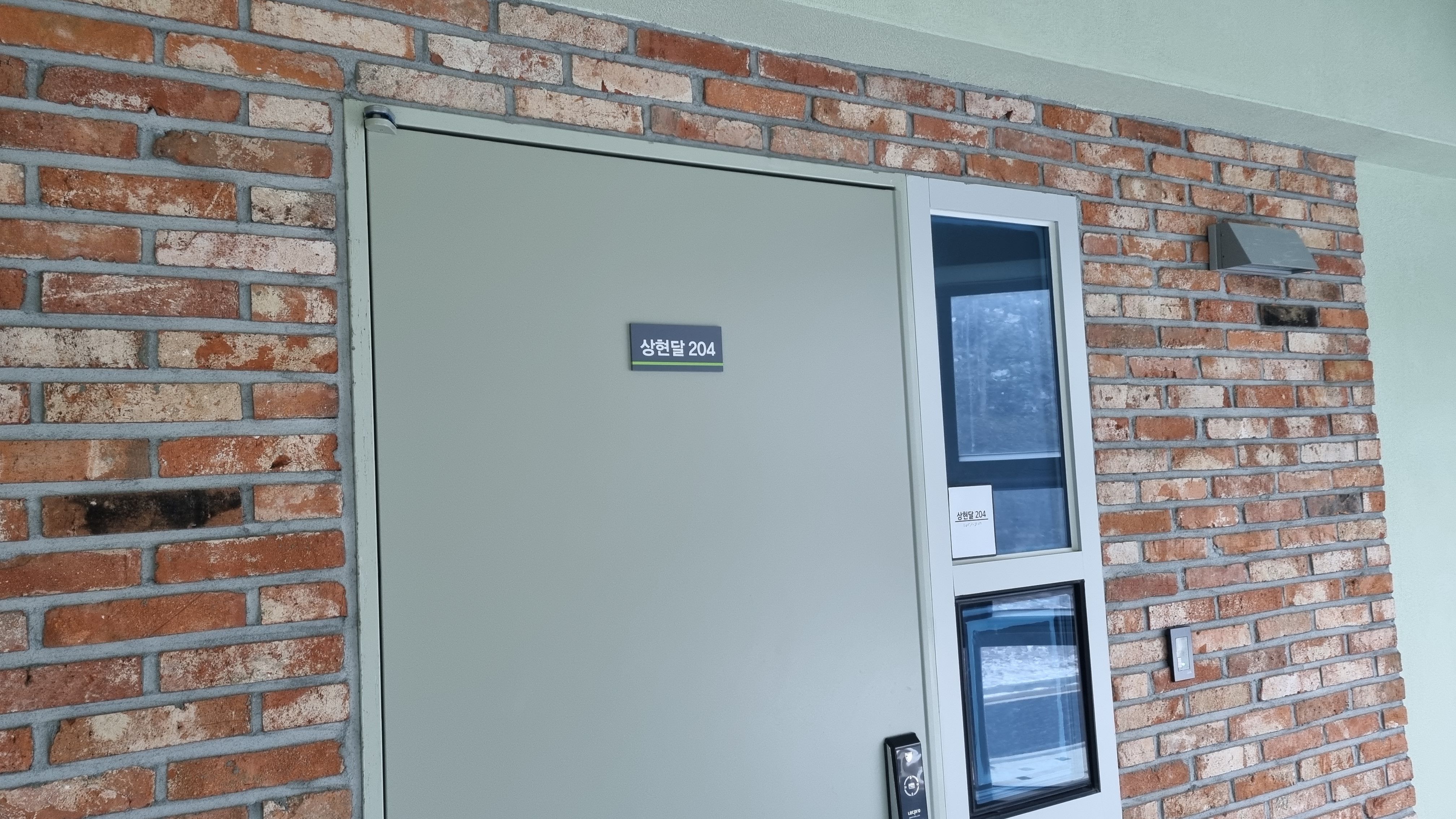 제가 묵었던 군산 자연휴양림이 상현달 휴양관 입구입니다. 역시 도어락이 설치되어있고 입구부터 새건물 분위기가 납니다.