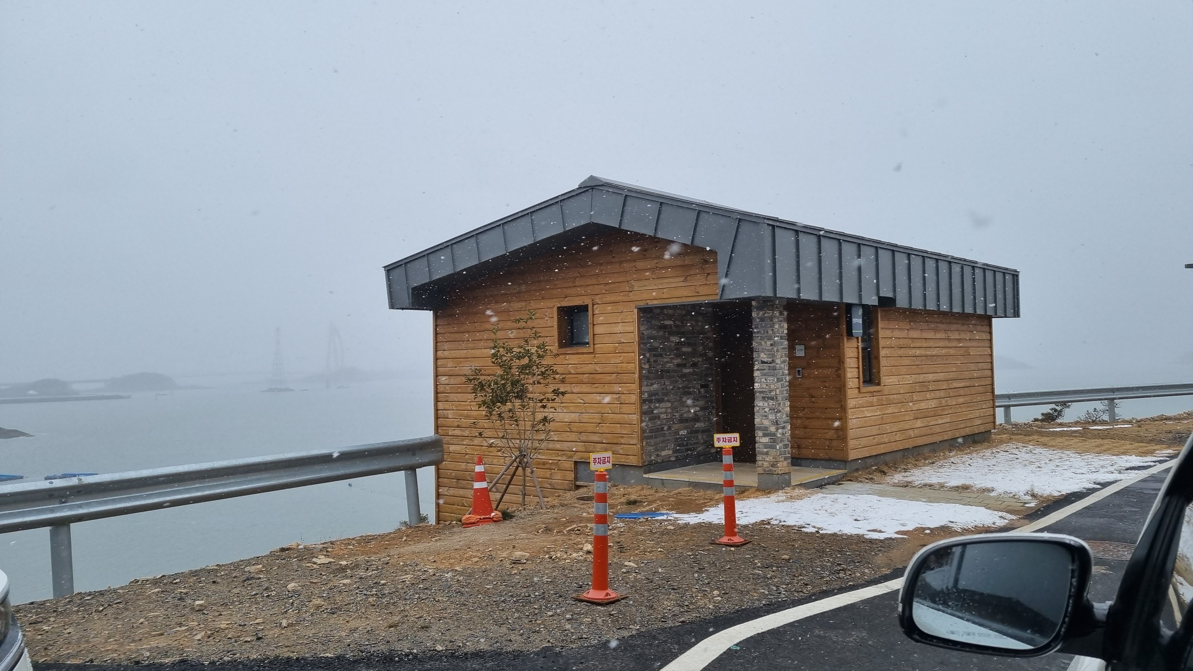 국립신시도자연휴양림을 가는길은 겨울철에는 다소 위험하더군요. 사진처럼 시멘트포장길인데 바로옆이 바닷가 낭떠러지라 그날 저녁 폭설이 내리는 바람에 제설작업도 제대로 안되고 빠져나오는데 애좀 먹었었죠. 이번달에 가시는분들도 스노우체인 준비하는게 좋겠네요.