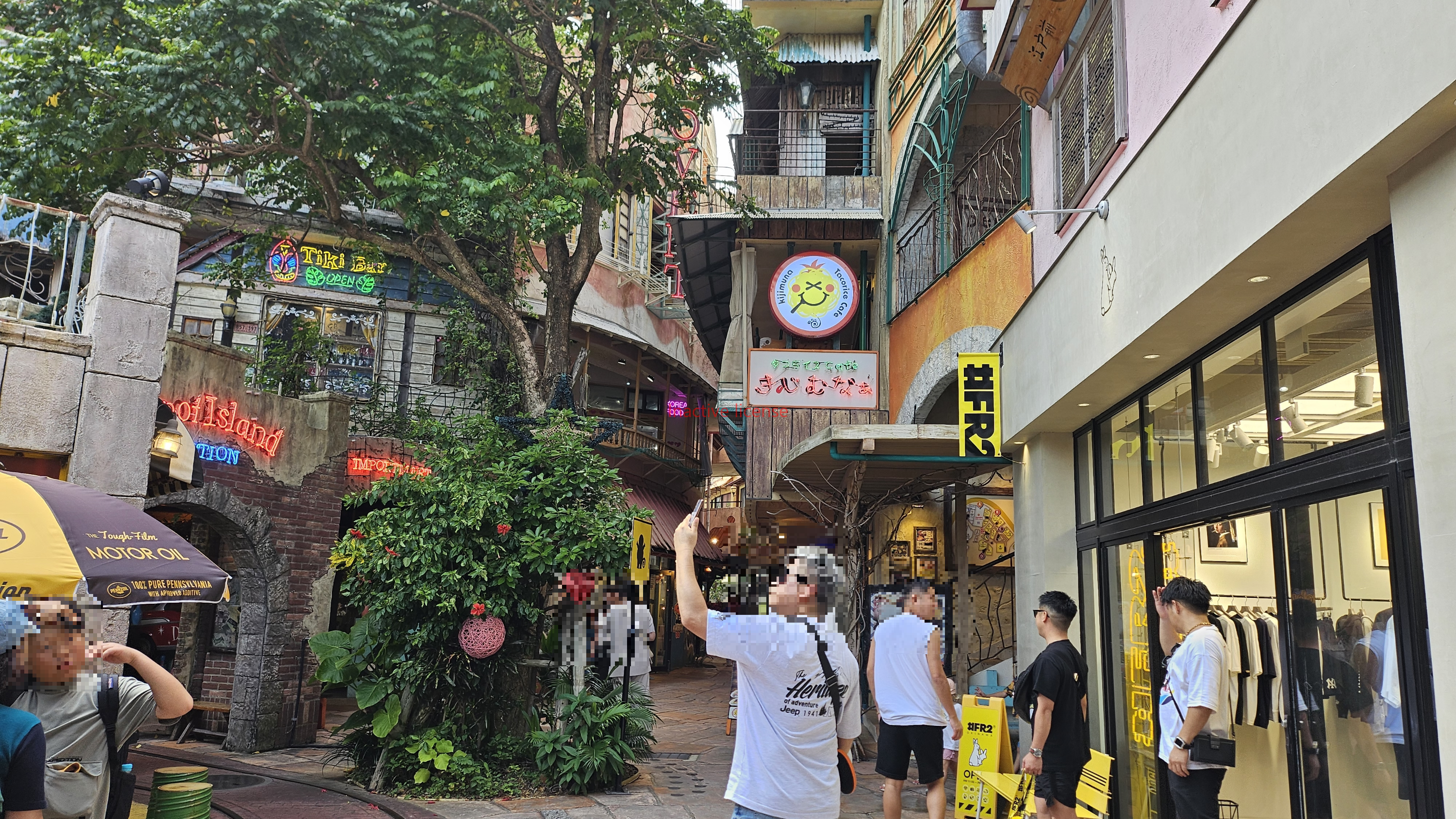 바깥쪽으로 나오면 좀더 화려한 건물ㅇ들이 보이고 한국음식점도 있고 다양한 음식들과 샵들이 이어집니다.  확실히 우리나라에도 이런 비슷한 분위기가 있기는 하지만 실내 미국인들이 많이 이용하던 곳이어서 그런지 색다른 느낌이 강합니다.