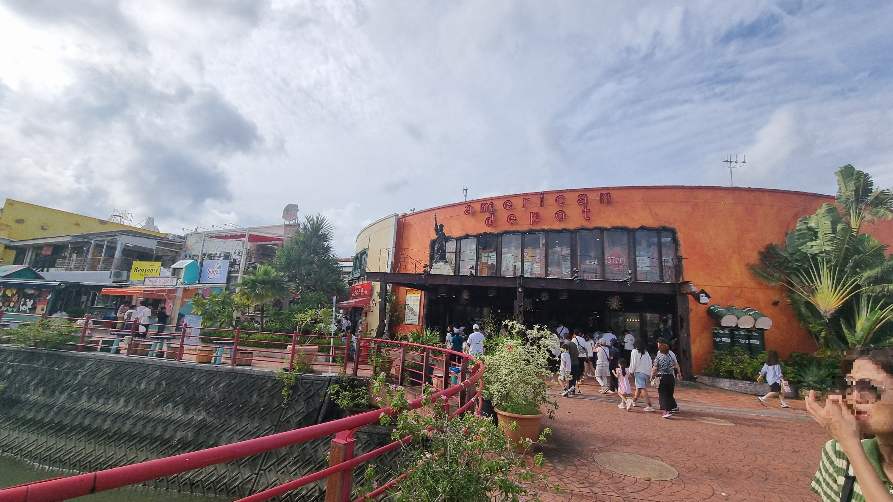 아메리칸빌리지 주차장은 빌리지내에도 있기는 하지만 저희는 오키나와 대형마트 형태인 이온몰도 방문하는 코스여서 맞은편 넓은 주차장에 주차를 하고 걸어갔는데요, 작은강인지 바다인지 모르겠지만 다리를 건너면 여행이 시작됩니다. 참고로 이곳 주차장은 무료라고 하네요. 다리를 건너면 바로 보이는 건물은 옷이나 기념품등 다양한 물품을 판매하는 american depot 라는 건물인데요, 그냥 더워서 잠깐 들어는 가봤습니다.