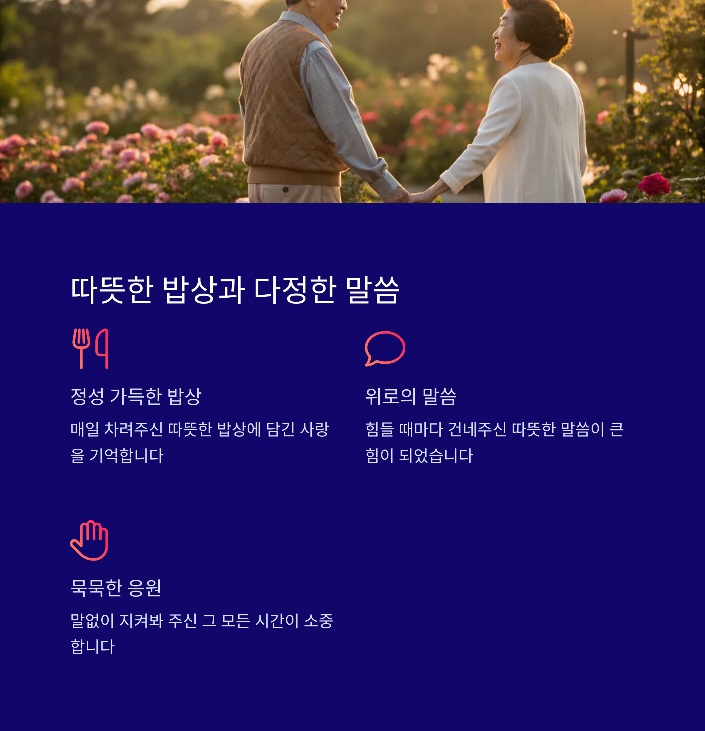 어머니의 손길에는 언제나 사랑이 담겨 있었고, 그 사랑이 저를 오늘의 저로 만들어주었습니다.