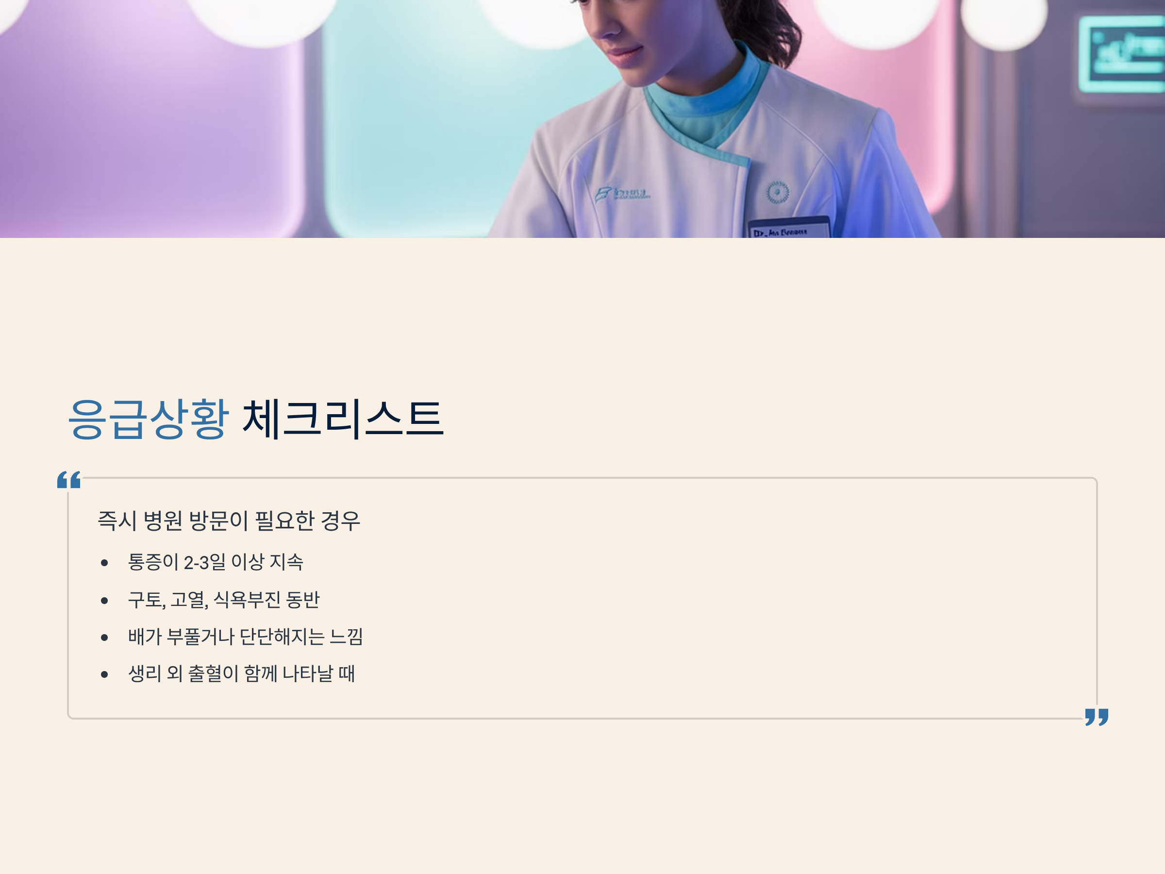 경우에 따라선 초기에 내과 진료를 보고 이후 산부인과로 연결되기도 해요. 진료과를 옮기는 게 불편하더라도, 원인을 정확히 파악하는 것이 우선입니다.