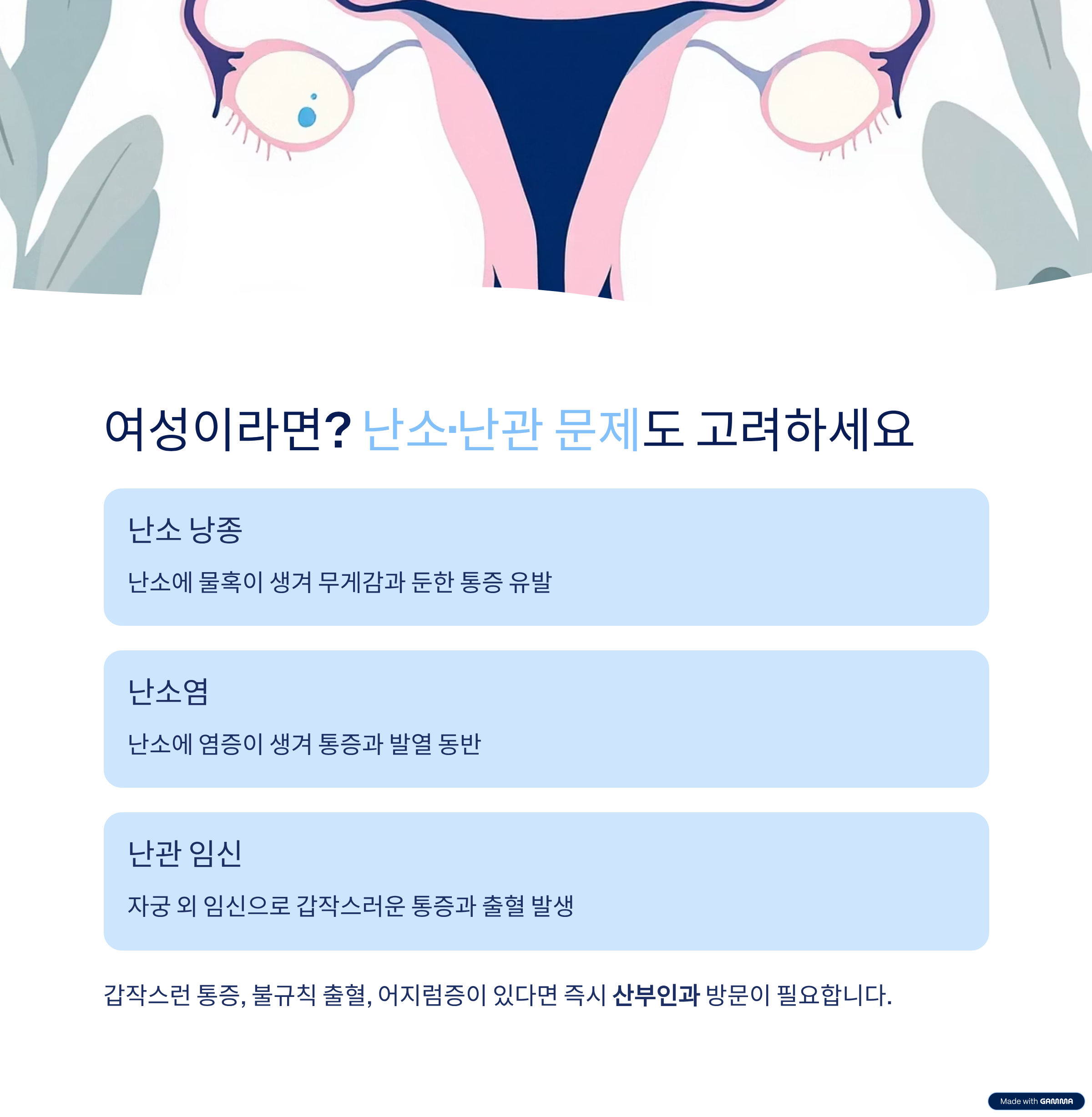 ④ 여성 하복부 통증: 난소·난관 문제도 고려