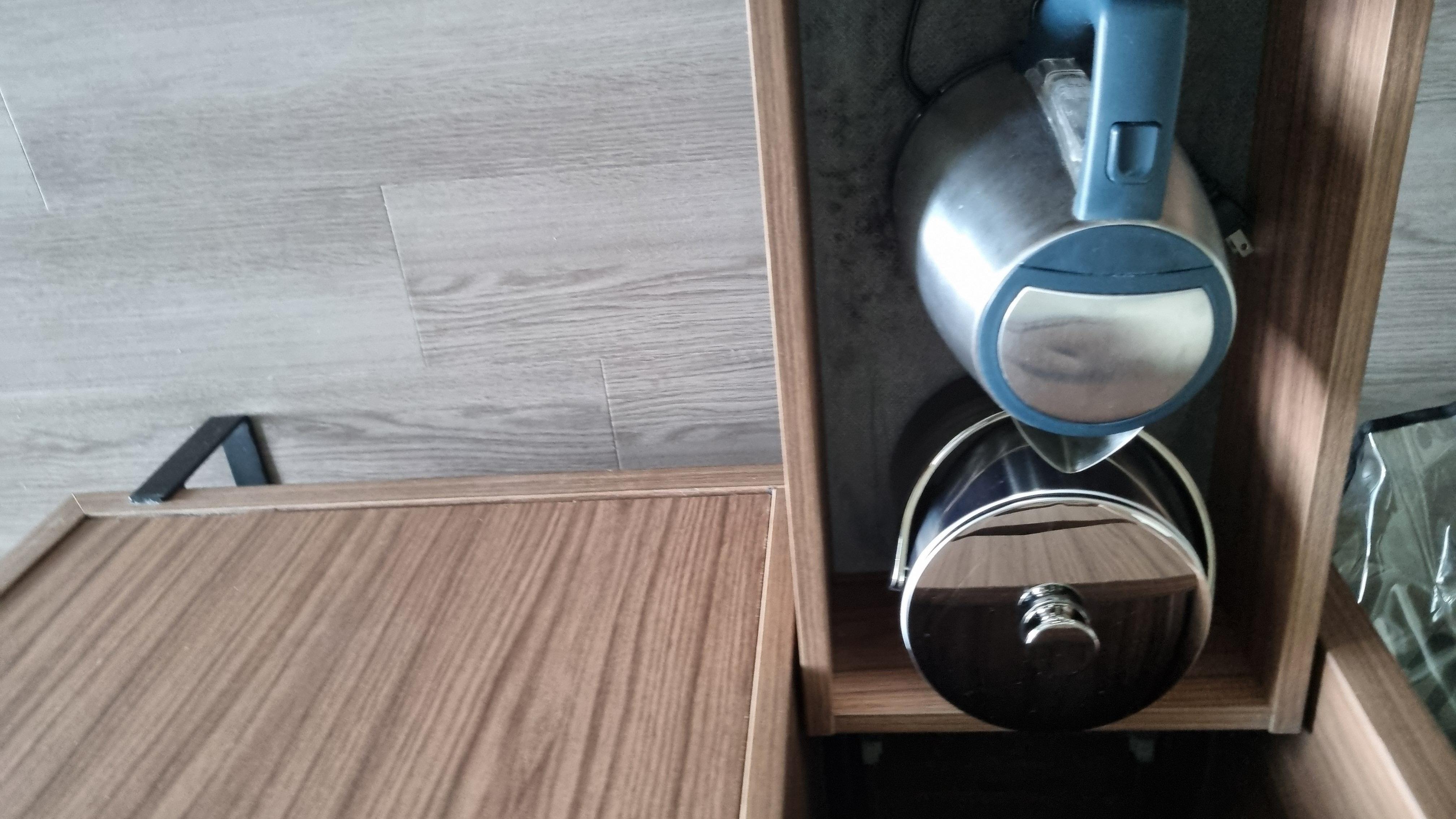 화장대아래 금고도 설치되어있지만 사용은 안했습니다. 컵라면 먹을때 커피포트 사용해봤는데 깔끔히 잘관리되고 있고 작지만 얼음통도 유용하게 잘 사용해답니다.