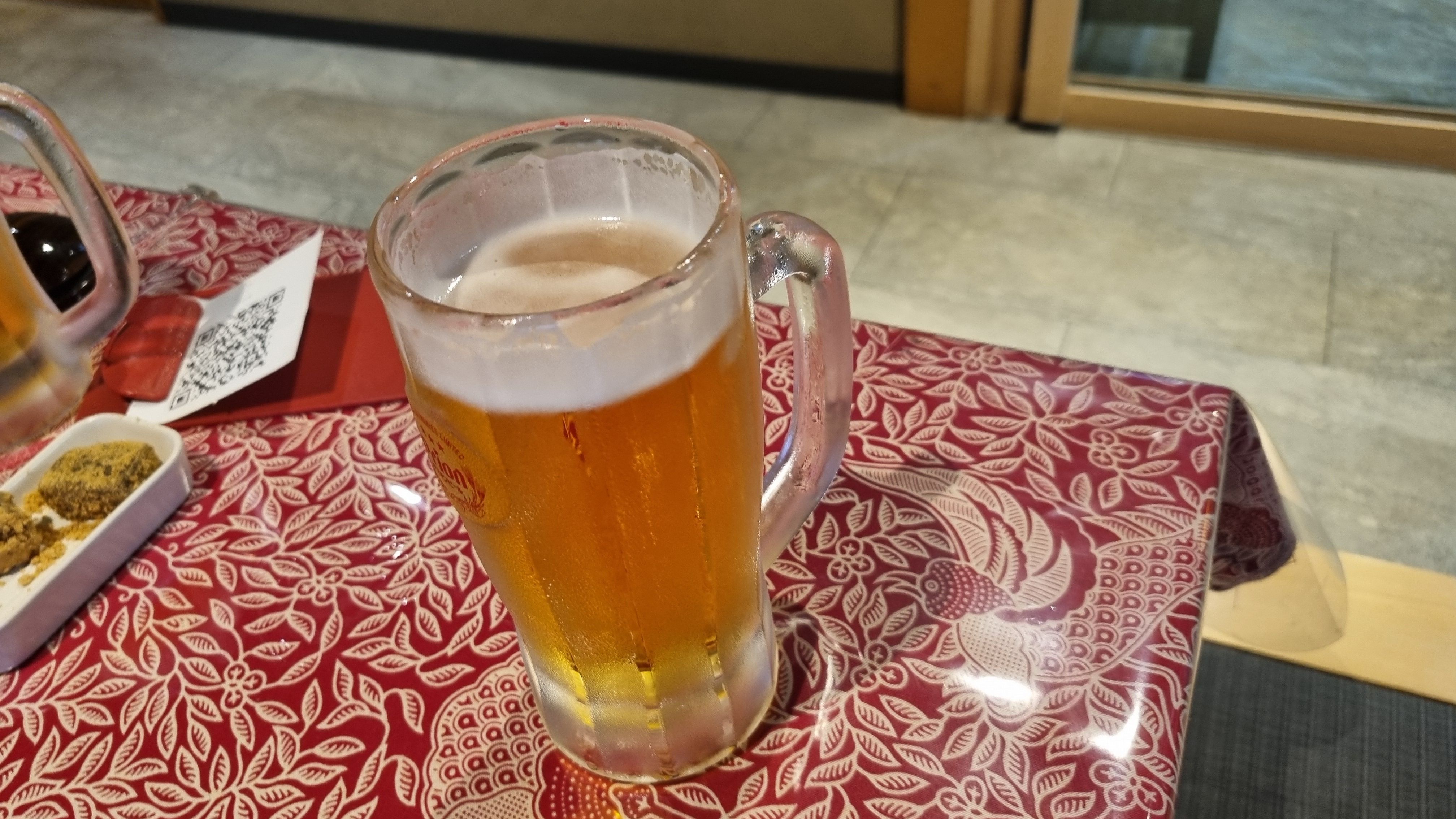 무더운 오키나와 날씨에 맥주가 빠질 수없죠. 오키나와에서 유명한 오리온 생맥주 한잔으로 더위를 식혀봅니다.