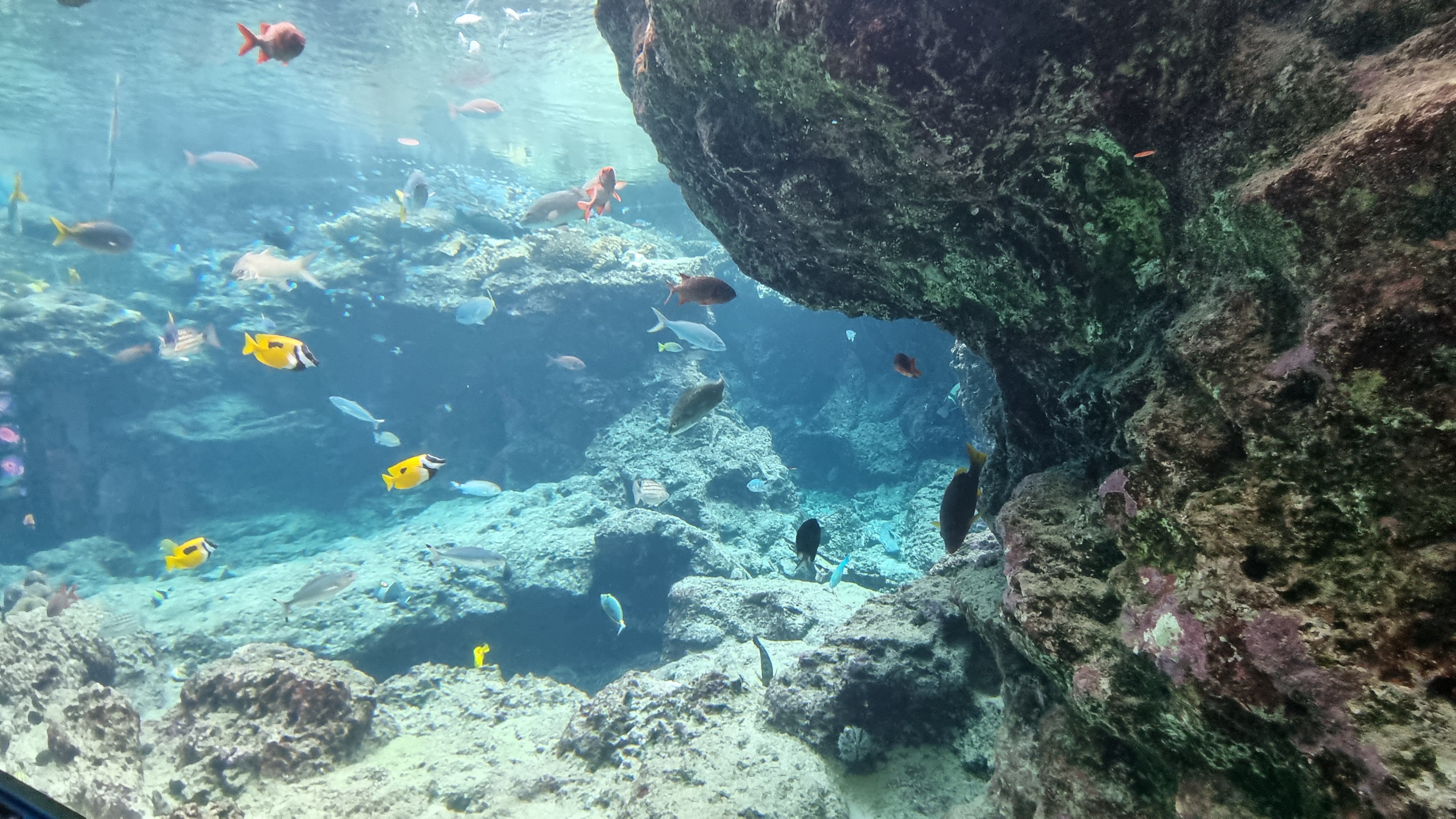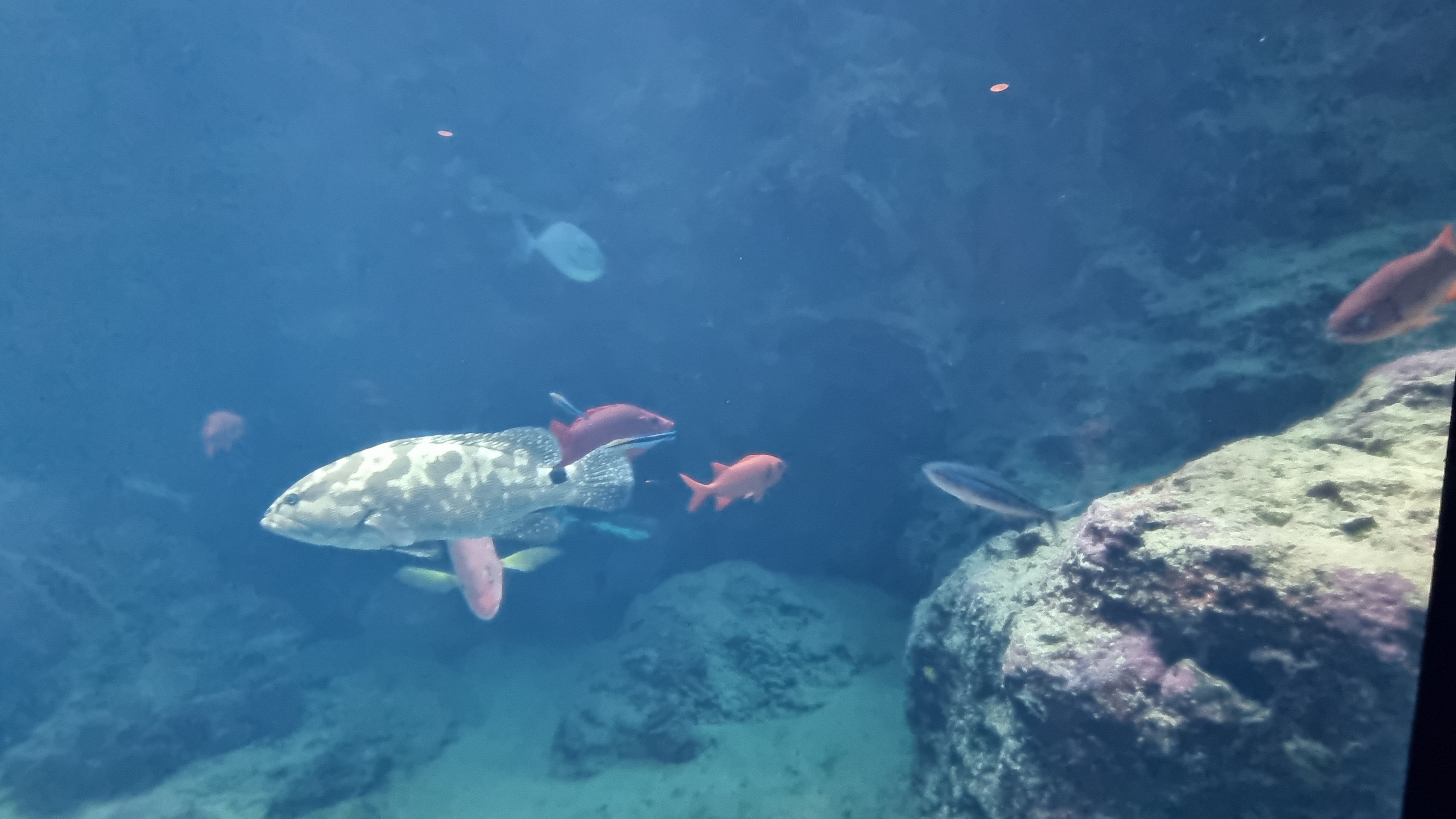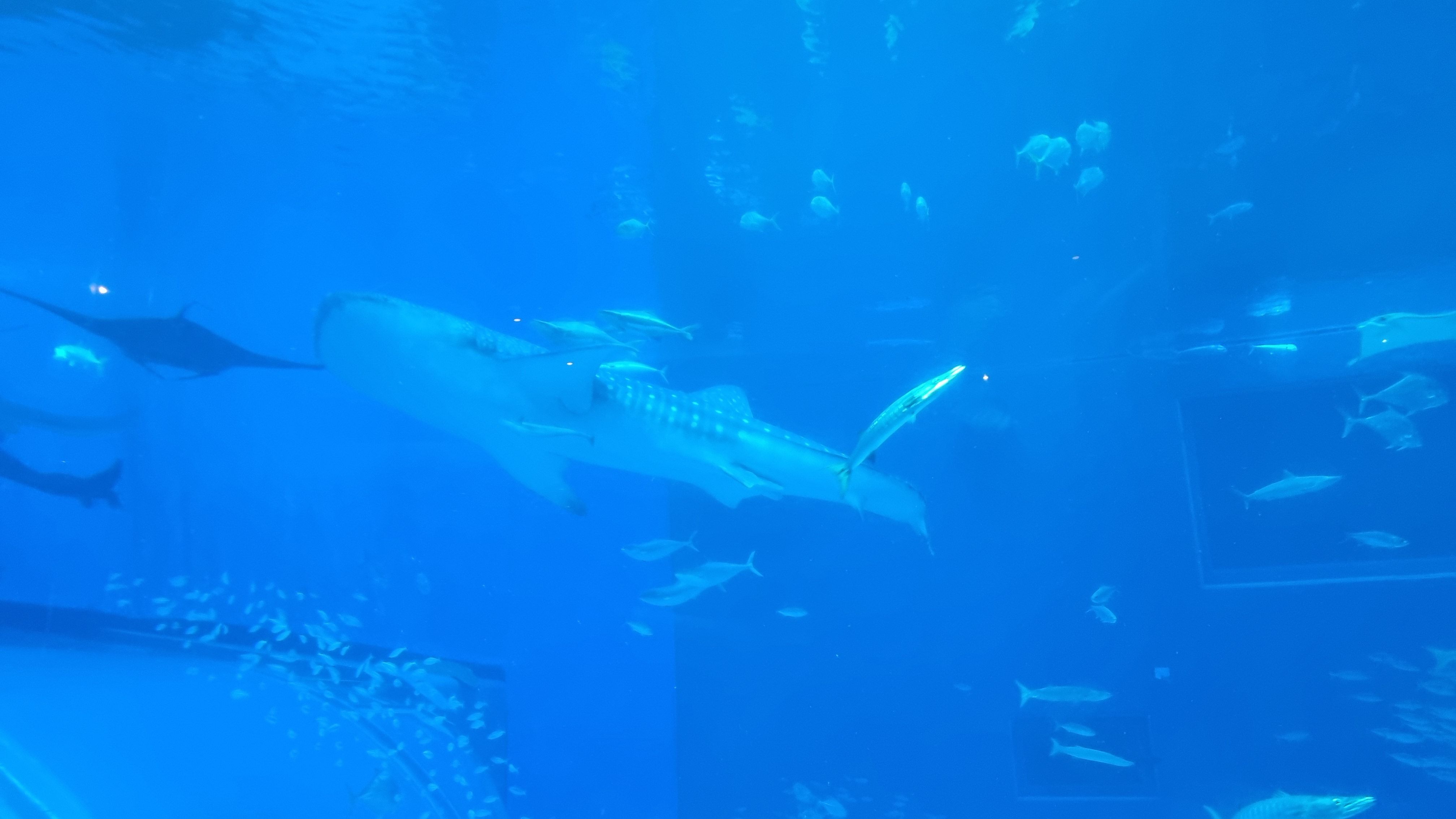 아크릴 패널 앞에서 바라보는 바닷속 풍경은 마치 직접 바다 속에 들어간 것 같은 착각을 일으킬 정도로 압도적이었습니다. 특히, 고래상어가 입을 벌리고 유유히 헤엄치는 순간은 정말 잊지 못할 장관이었어요!