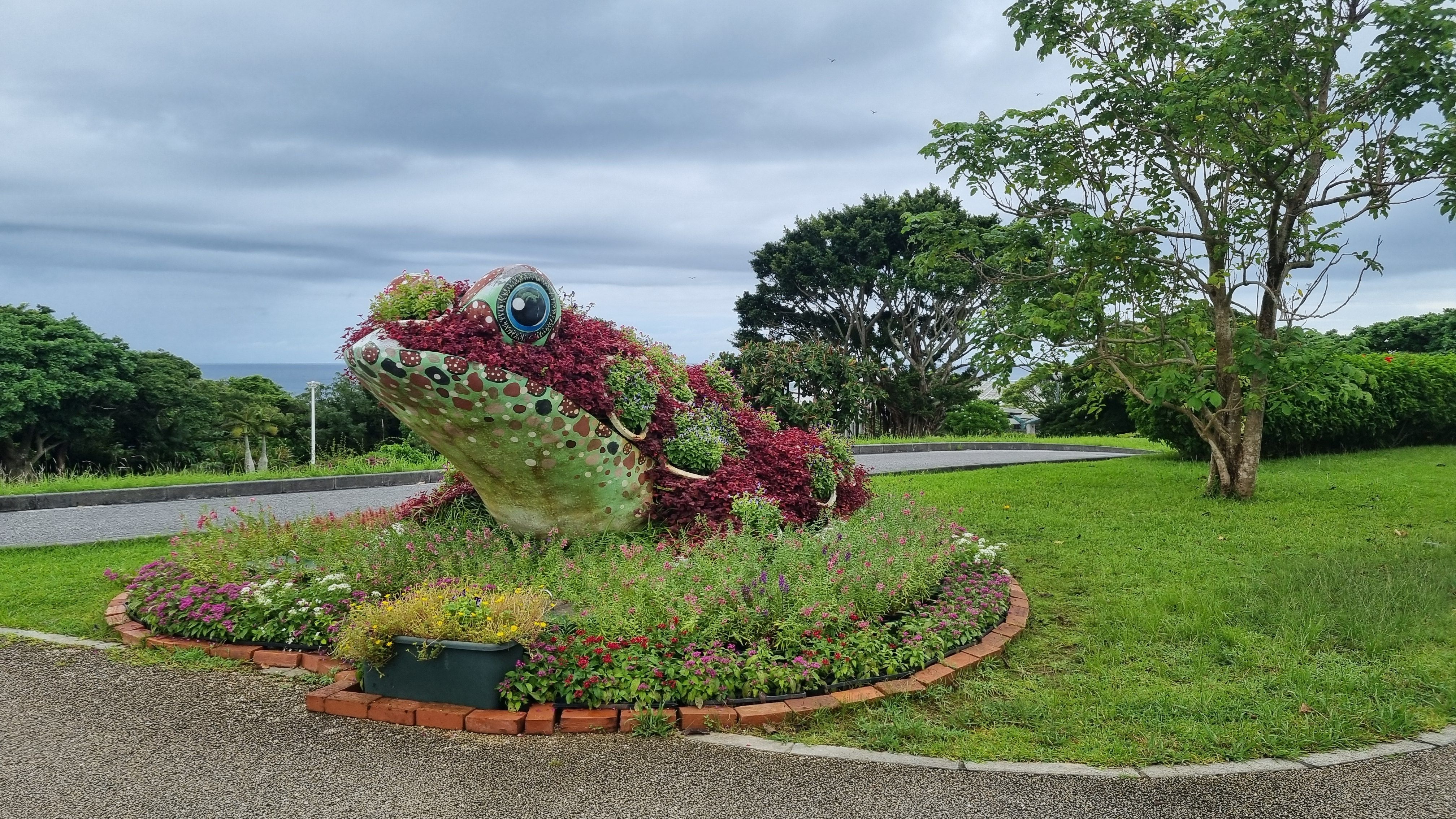 가는길에 오키나와의 자생나무들과 꽃 갖가지 조형물들이 많아서 아이들도 좋아하고 사진 촬영명소도 많은 츄라우미수족관 입니다.